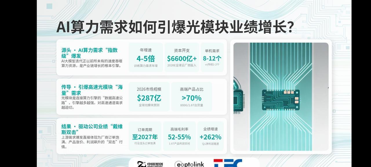 豆包做的PPT,不知道数据对不对?反正都是AI算力爆炸式指数增长,带起光模块,光通讯产业链巨大的需求。