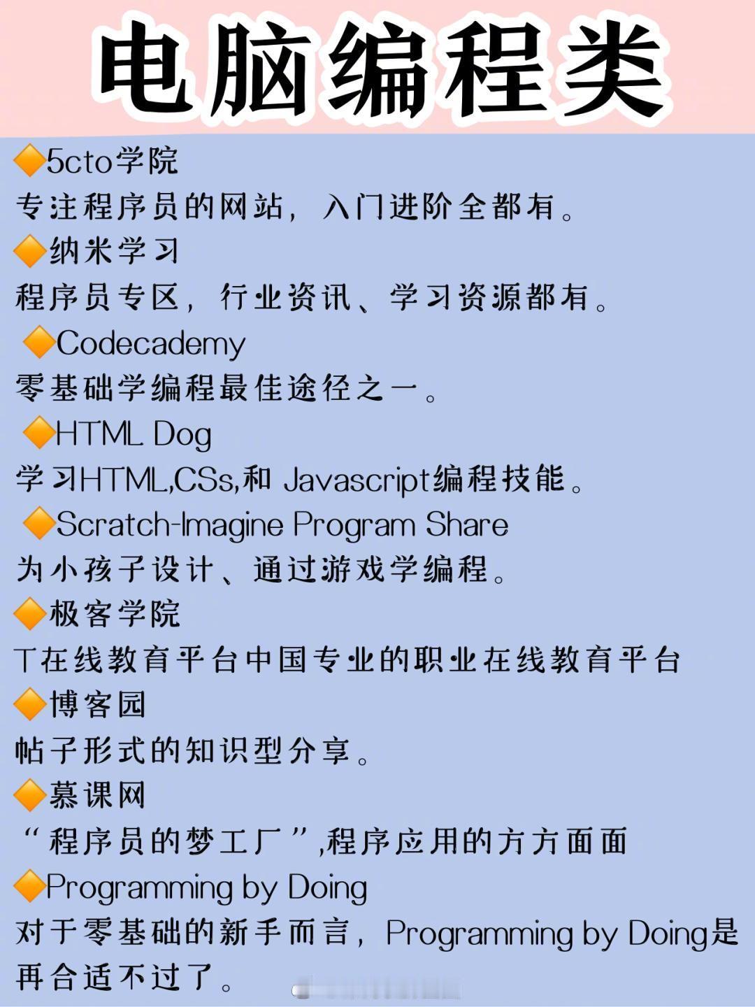 72个免费自学的资源网站,大家一起变优秀变强大~