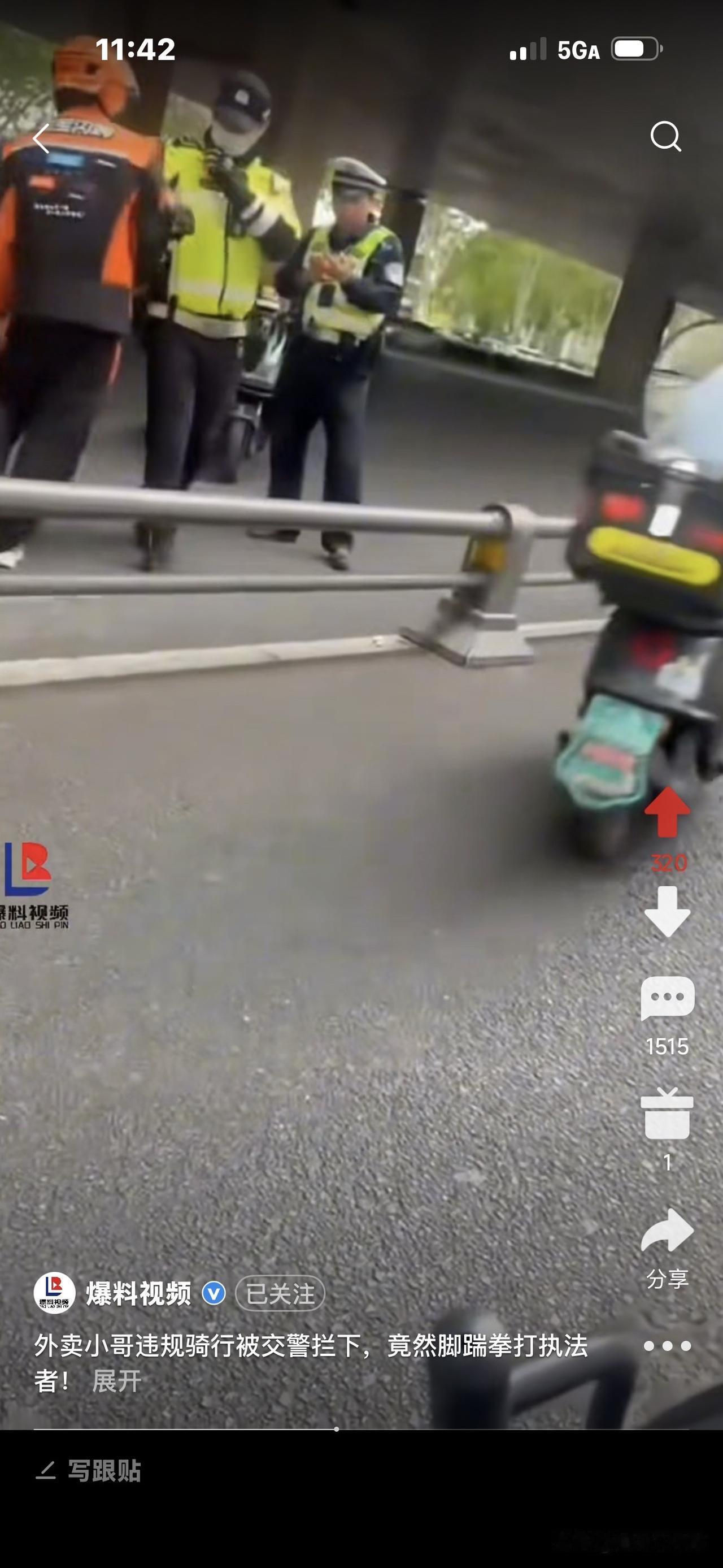 有人说,外卖小哥骑车违规了,他逆行在马路中间,所以被两名帽子叔叔拦下了。
