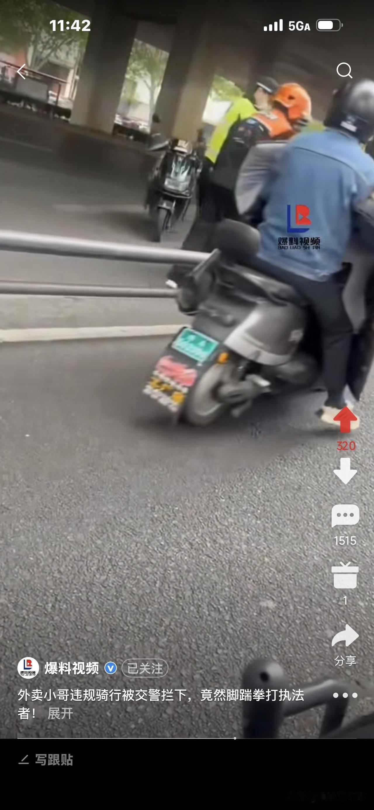 马路上,有几个骑电动车的停了下来,大概感到惊讶或看热闹吧,视频到这里就结束了。