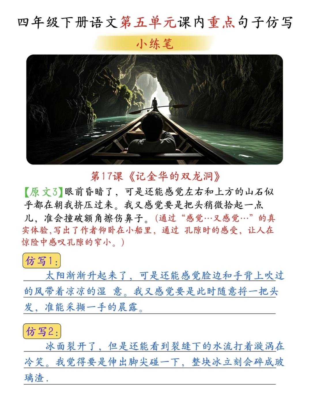 四年级下册语文,第五单元第17课《记金华的双龙洞》课文重点句子仿写,收藏参考学习