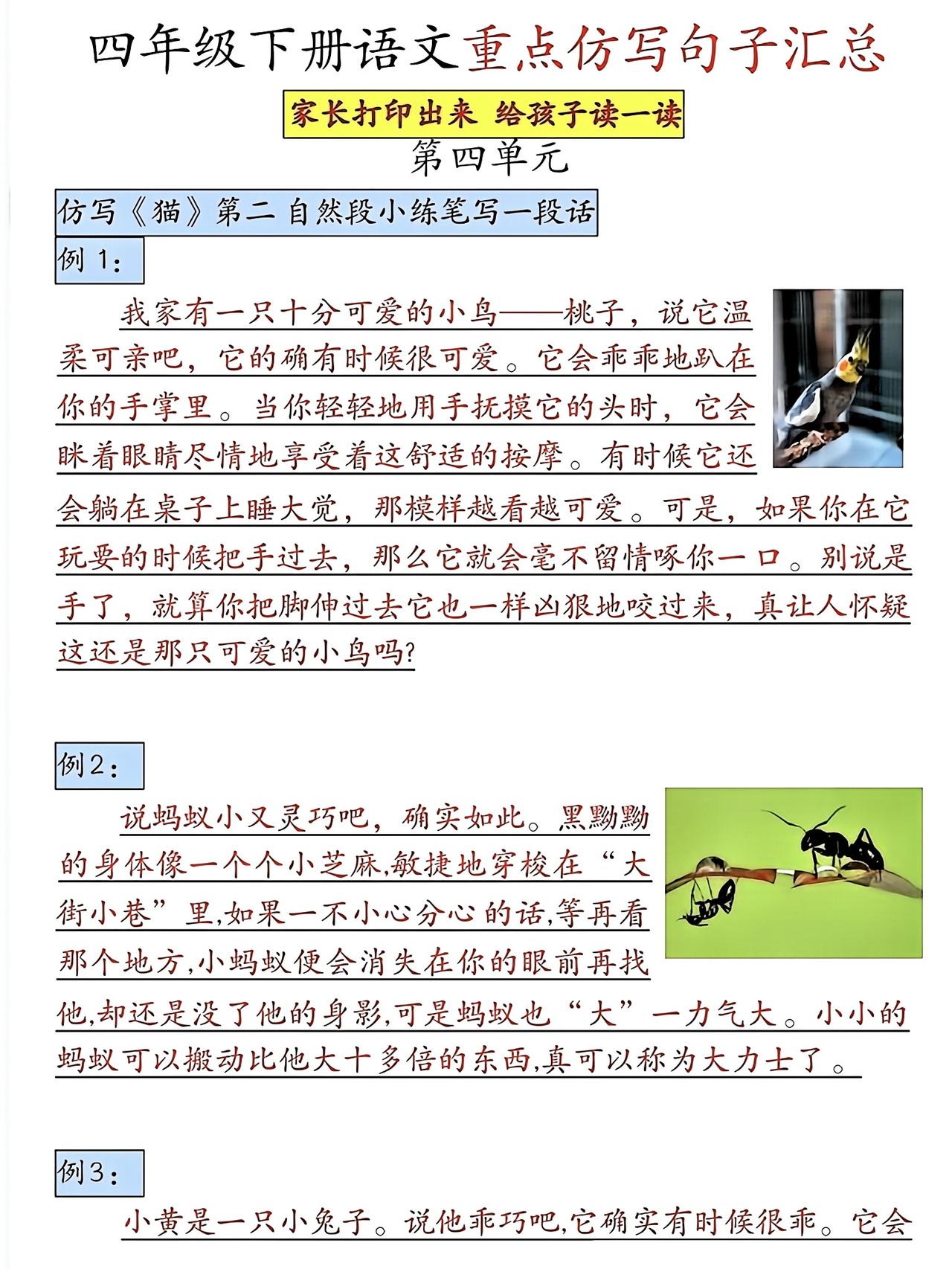 四年级下册语文,第三、四单元重点仿写句子汇总,收藏备用~四年级语文 仿写小练笔