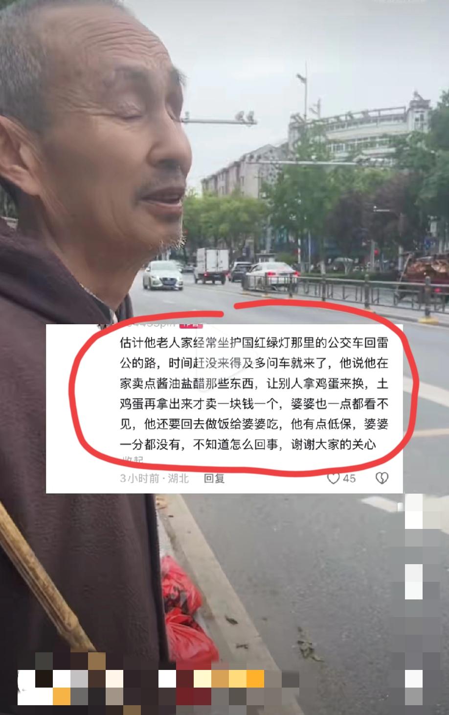 4月20日,湖北安陆。网友发视频称,盲人大爷常年靠做点小生意维持生计,卖鸡蛋时被坏人偷走30个鸡蛋。据大爷描述,坏人假装买鸡蛋,鸡蛋给他后,他欺负大爷眼睛看不见,没付钱就走了……
