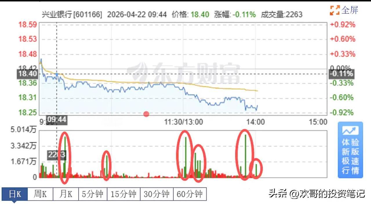 今天兴业银行,是银行股里成交量最高的个股,成交超23亿。