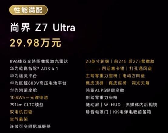 896线激光雷达/ADS4.1/鸿蒙座舱/随动屏/流媒体后视镜/电吸门/电前备箱