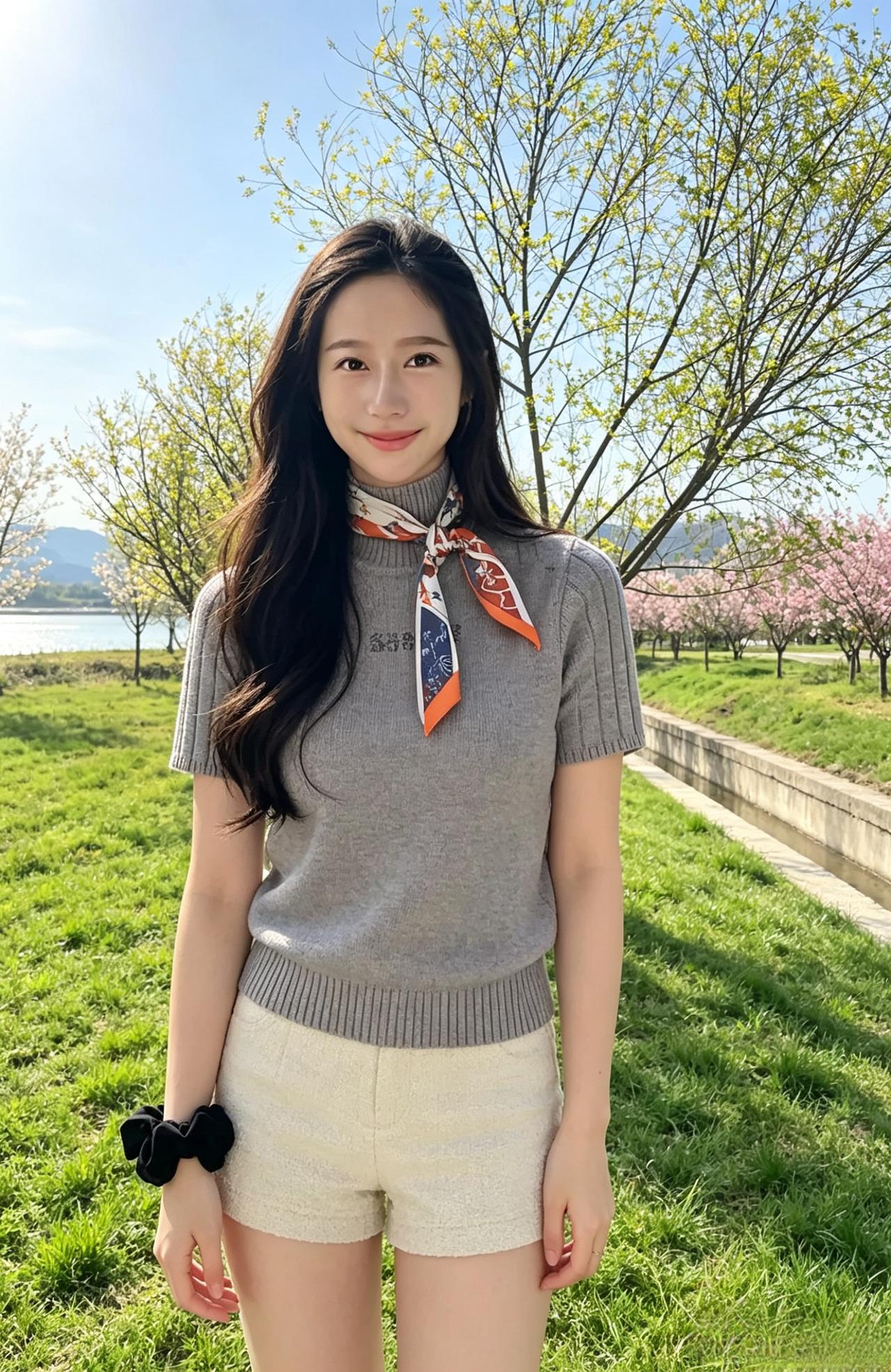 灰色的针织衫贴着温柔的轮廓