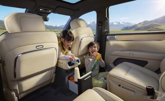 空间大、座椅舒适,二排航空座椅、车载冰箱、娱乐屏、高端音响一应俱全,全家出行都是头等舱体验。