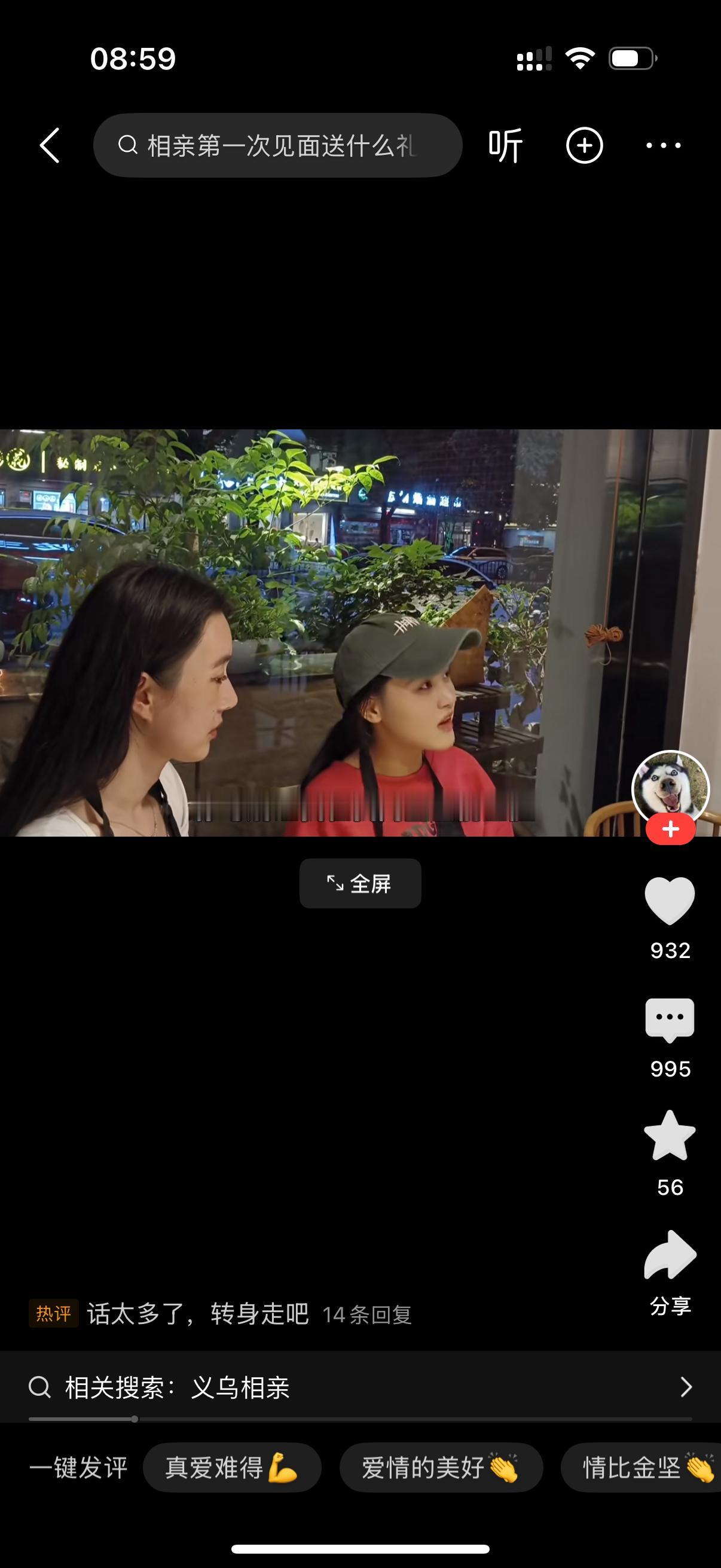 女生和男生相亲见面。女生带着自己的闺蜜和七大姑八大姨提前一个小时到了。她们先点菜