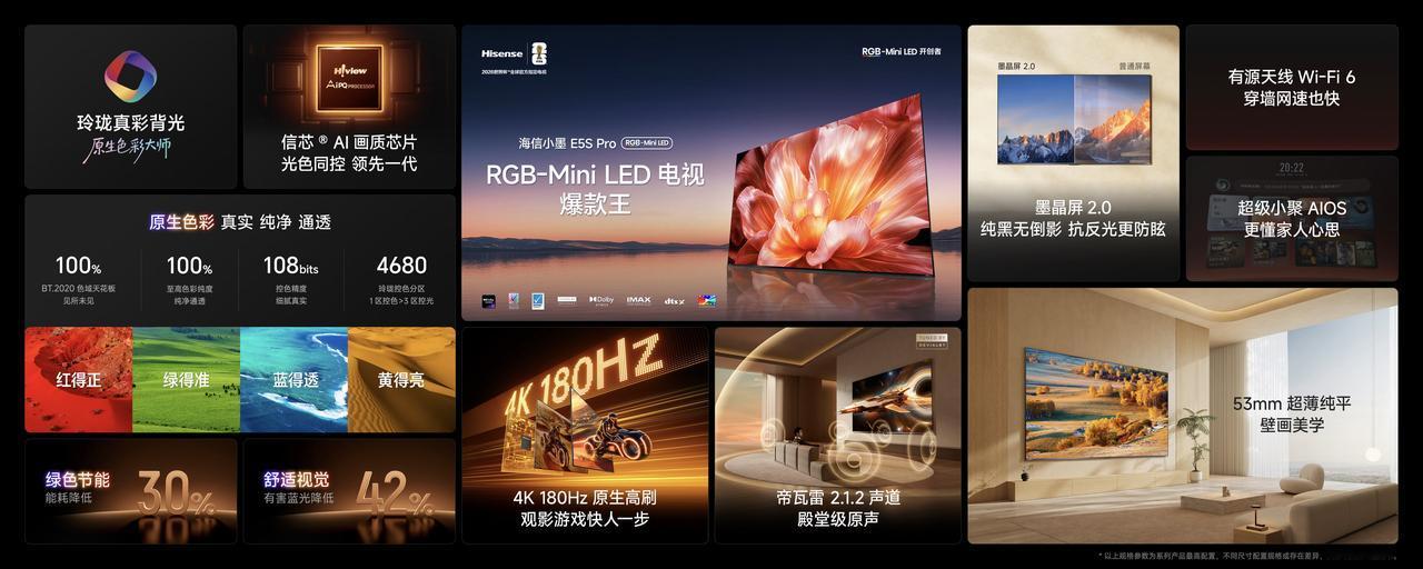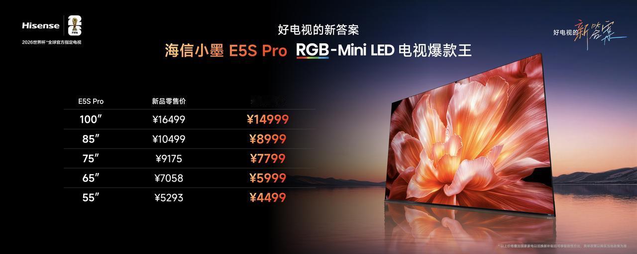 产品覆盖55至100英寸全尺寸段,适配不同户型客厅,首发价仅3999元起。海信小墨E5系列以极致的配置下放,加速高端Mini LED电视全民普及,用超高性价比,让每一户家庭都能轻松拥有沉浸式居家影音体验。