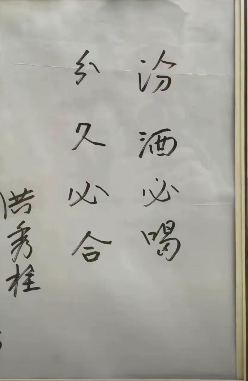 2019年,中国国民党前主席洪秀柱访问山西汾酒集团的时候,题字:汾酒必喝,分久必合。