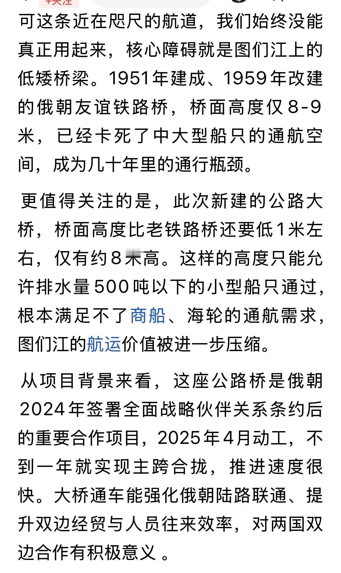 俄罗斯和朝鲜可能没有修建高跨大桥的技术,这是一个高端技术!