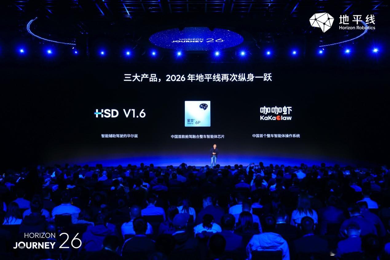 地平线发布中国首款舱驾融合整车智能体芯片星空®,5nm制程,650TOPS算力。搭配KaKaClaw咖咖虾™整车智能OS与HSD V1.6智驾系统,舱驾一体打破域控壁垒,大众、奇瑞、比亚迪等10余家车企已意向合作,iCAR全球首发搭载。