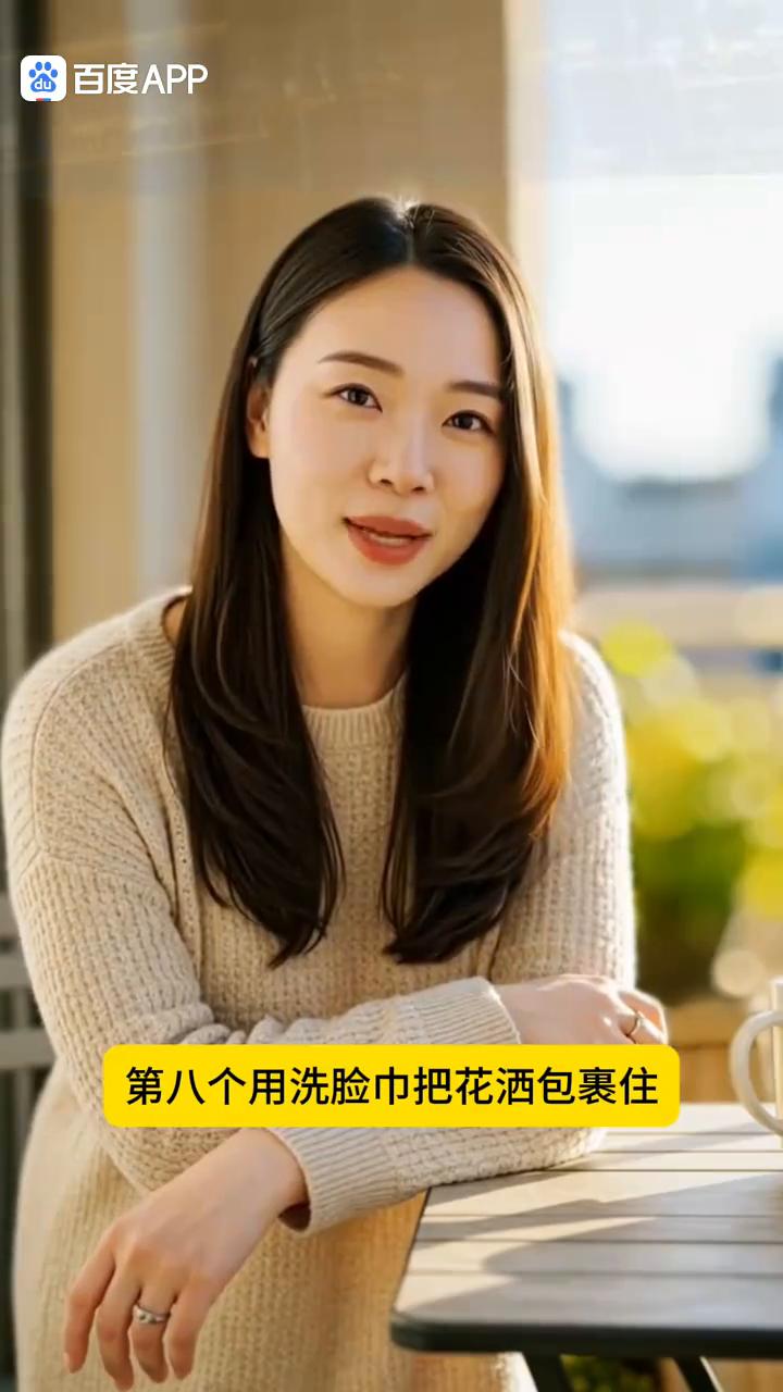·第八个、用洗脸巾把花洒包裹住,倒点醋再用塑料袋包起来静置半小时,时间一到堵住的花洒孔就通了,出水也更快了。
