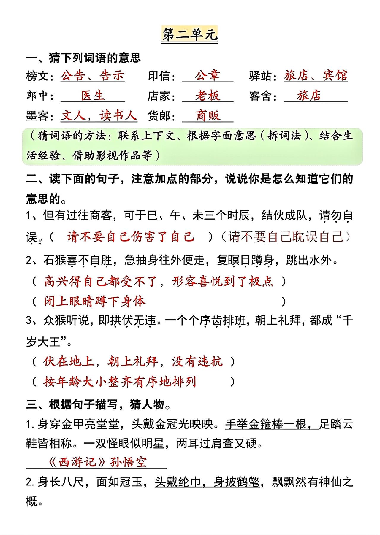 五年级下册语文,第一、二单元《语文园地》词句段运用,收藏学习~五年级语文 语文园