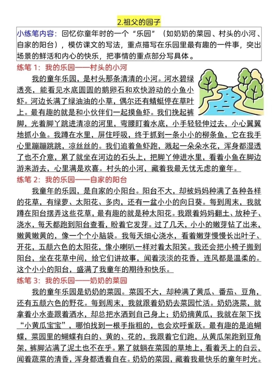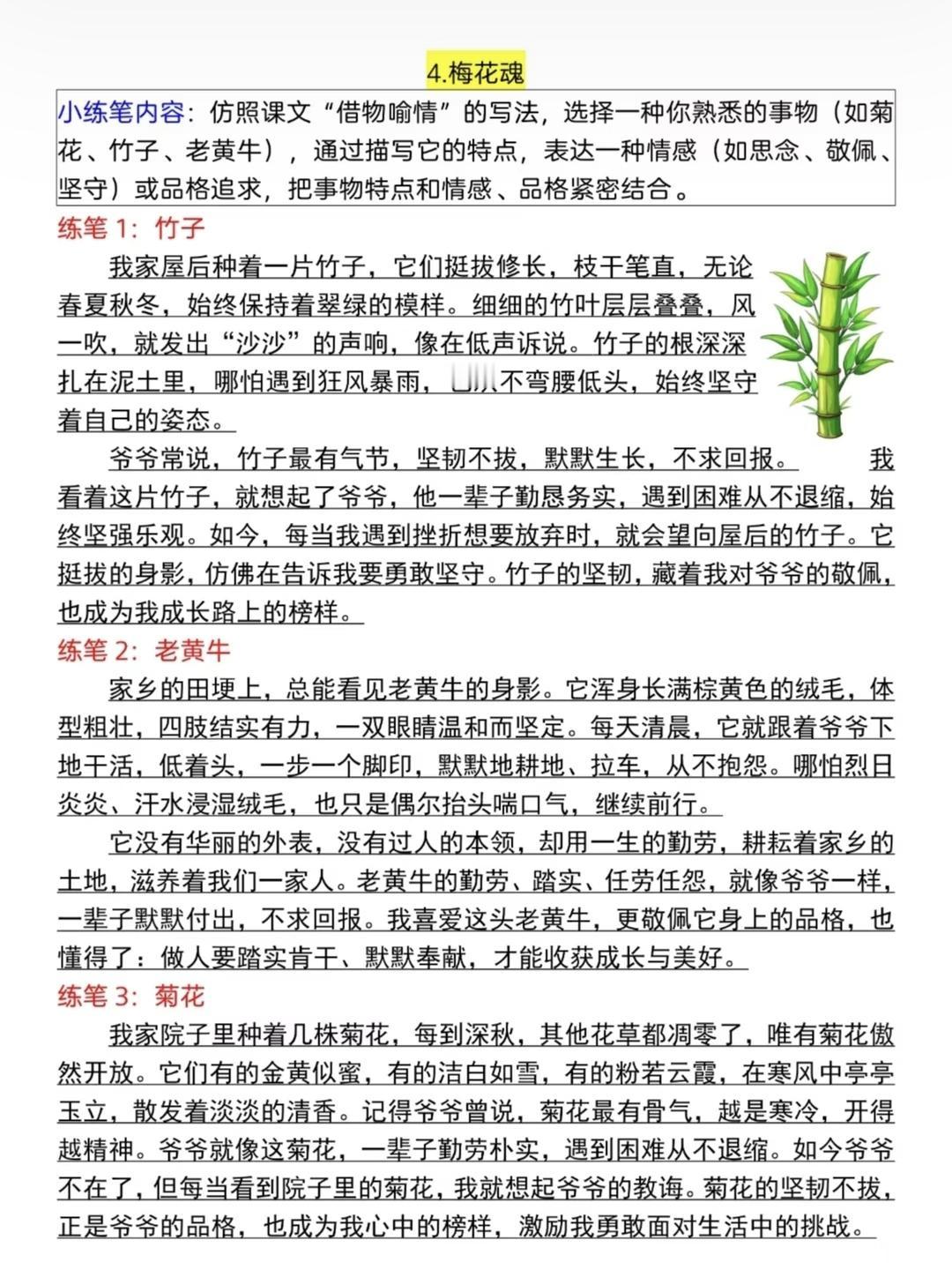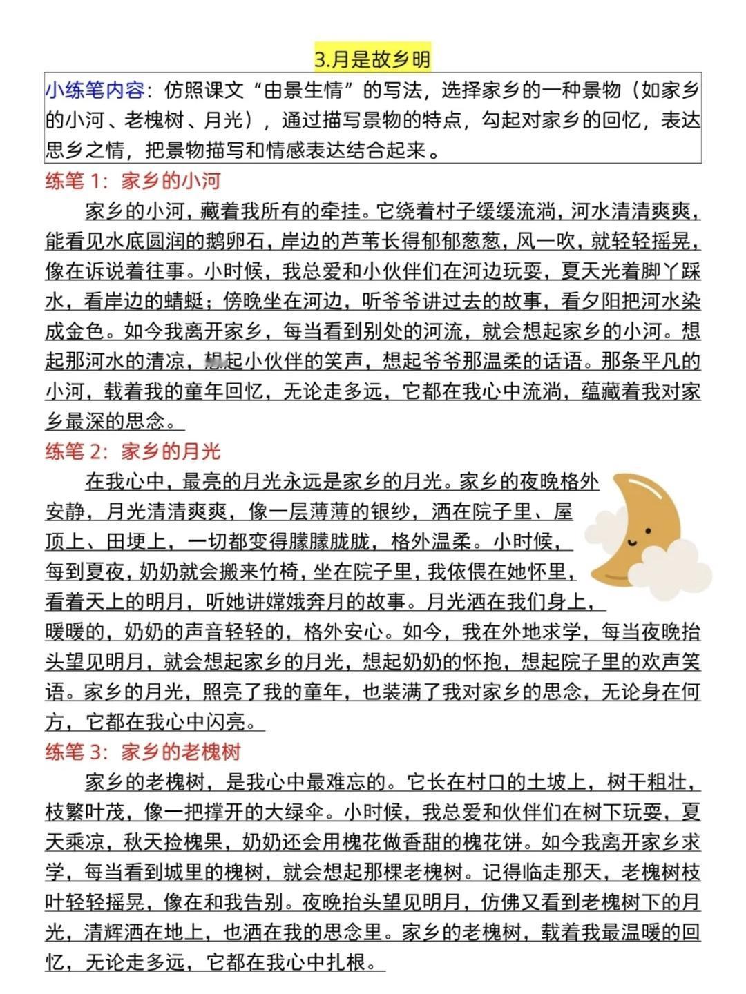 五年级下册语文,第一单元《古诗三首》《祖父的园子》《月是故乡明》《梅花魂》课后仿写小练笔,收藏参考学习~五年级语文 仿写小练笔语文仿写技巧