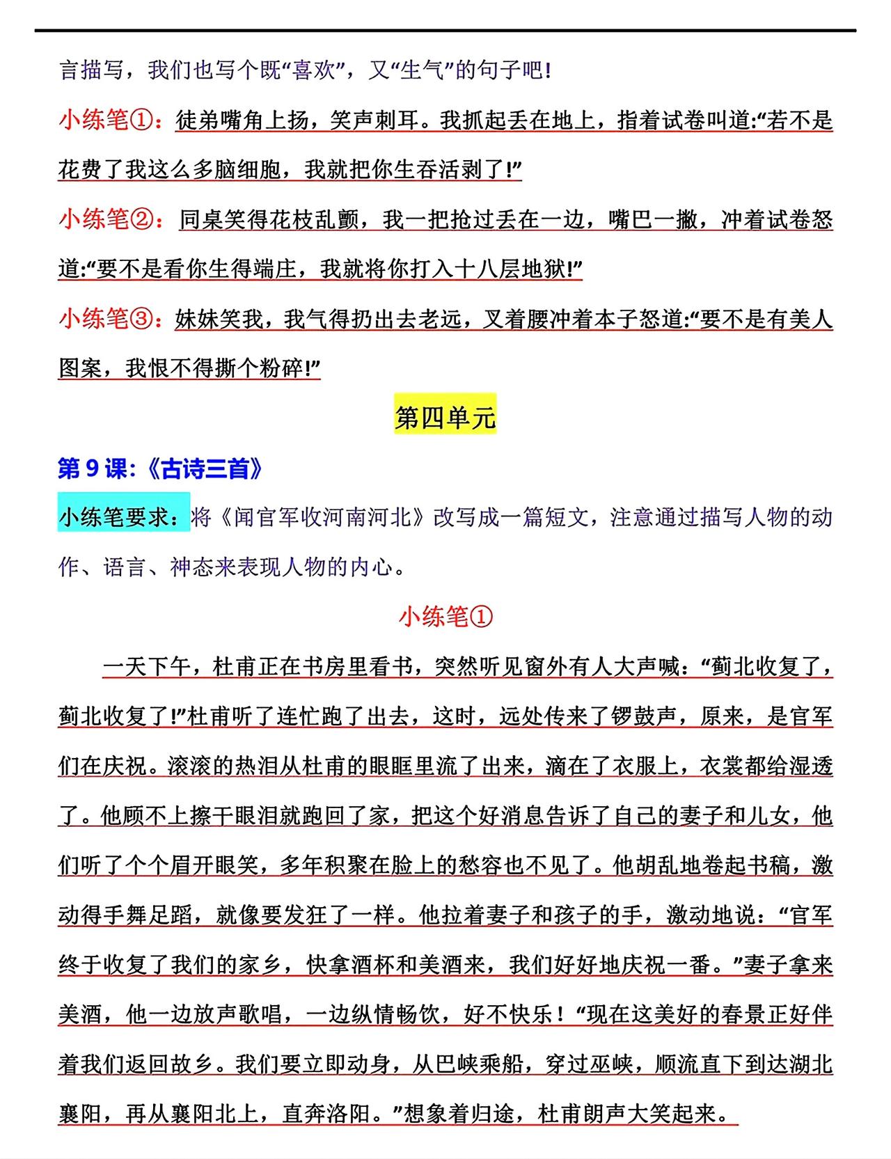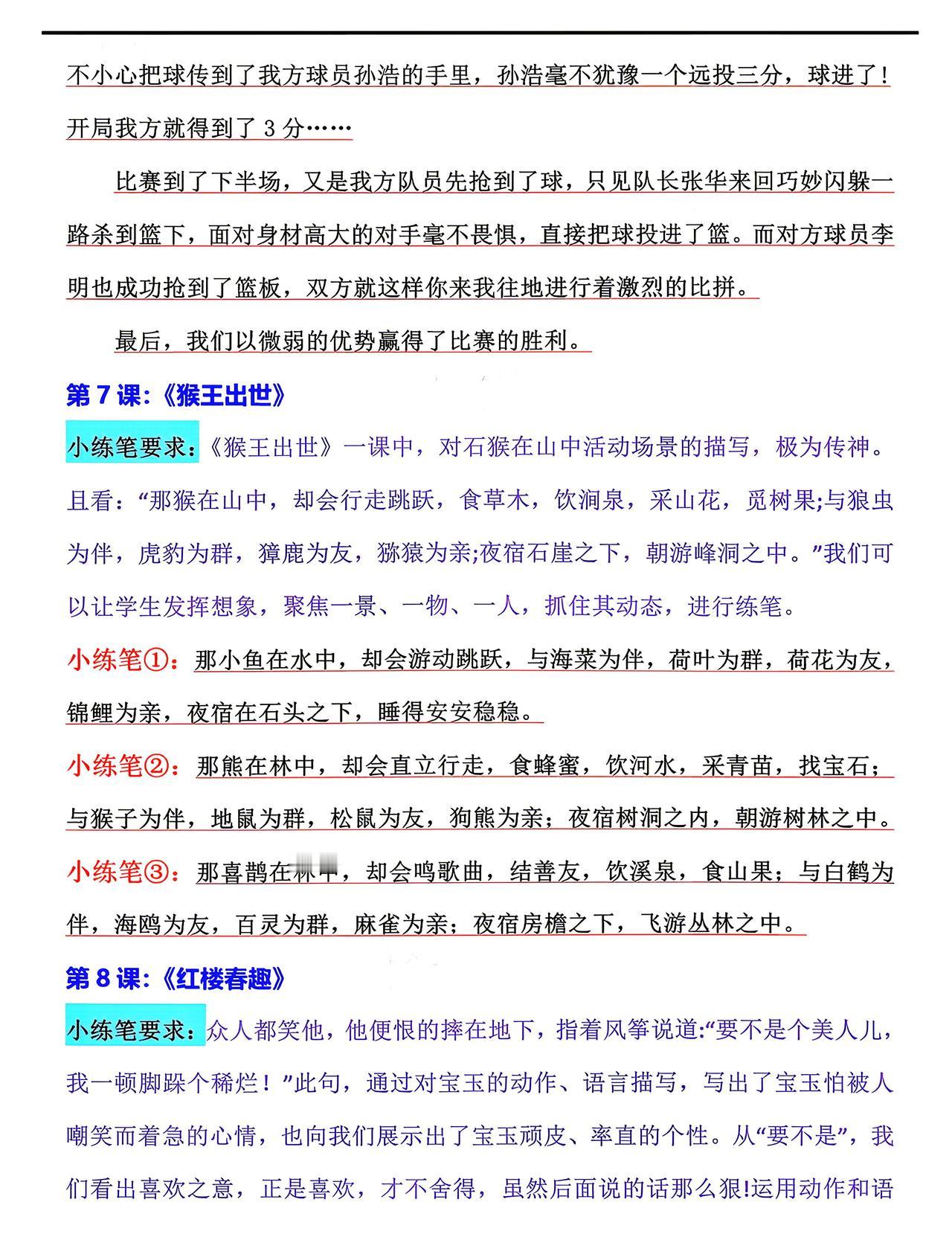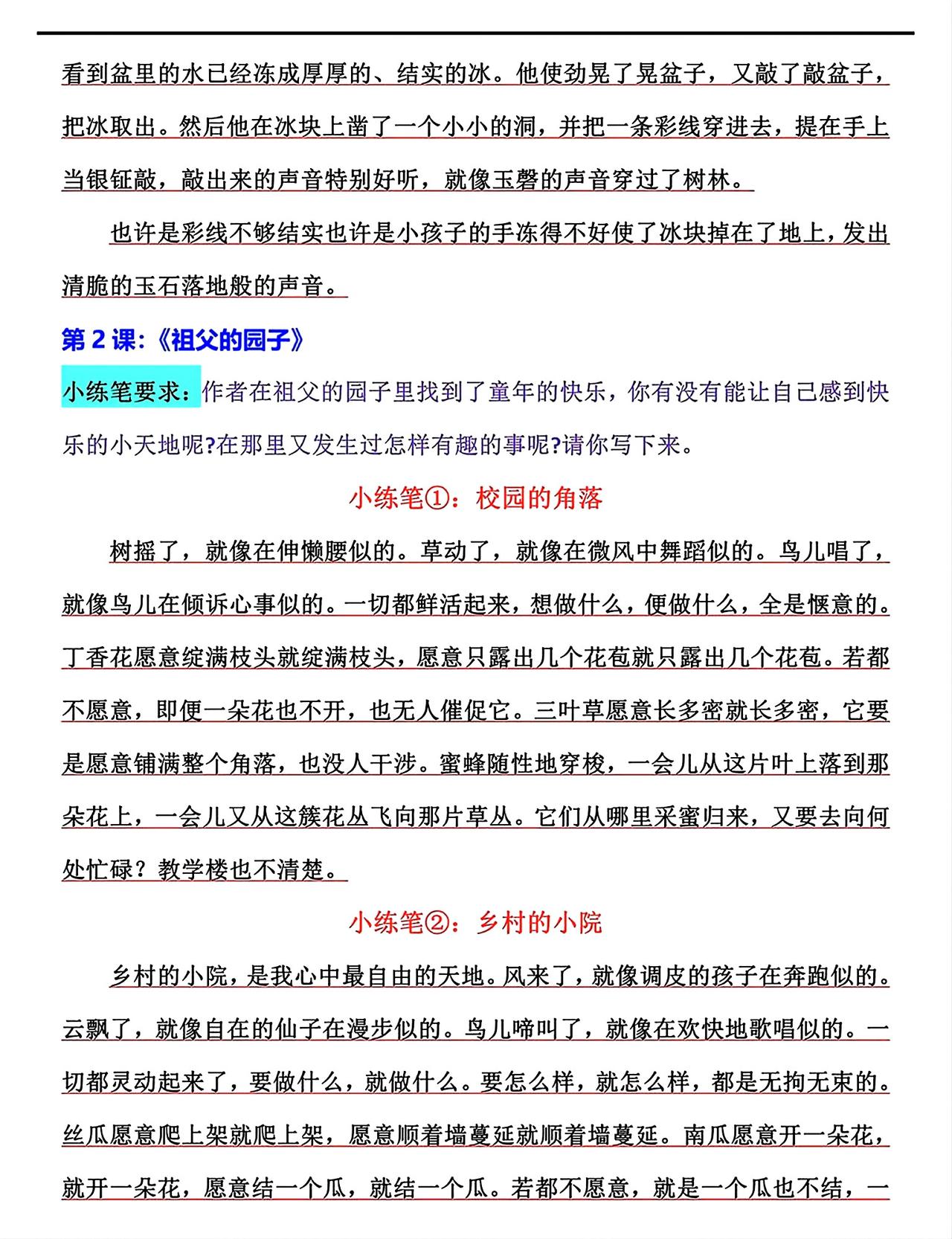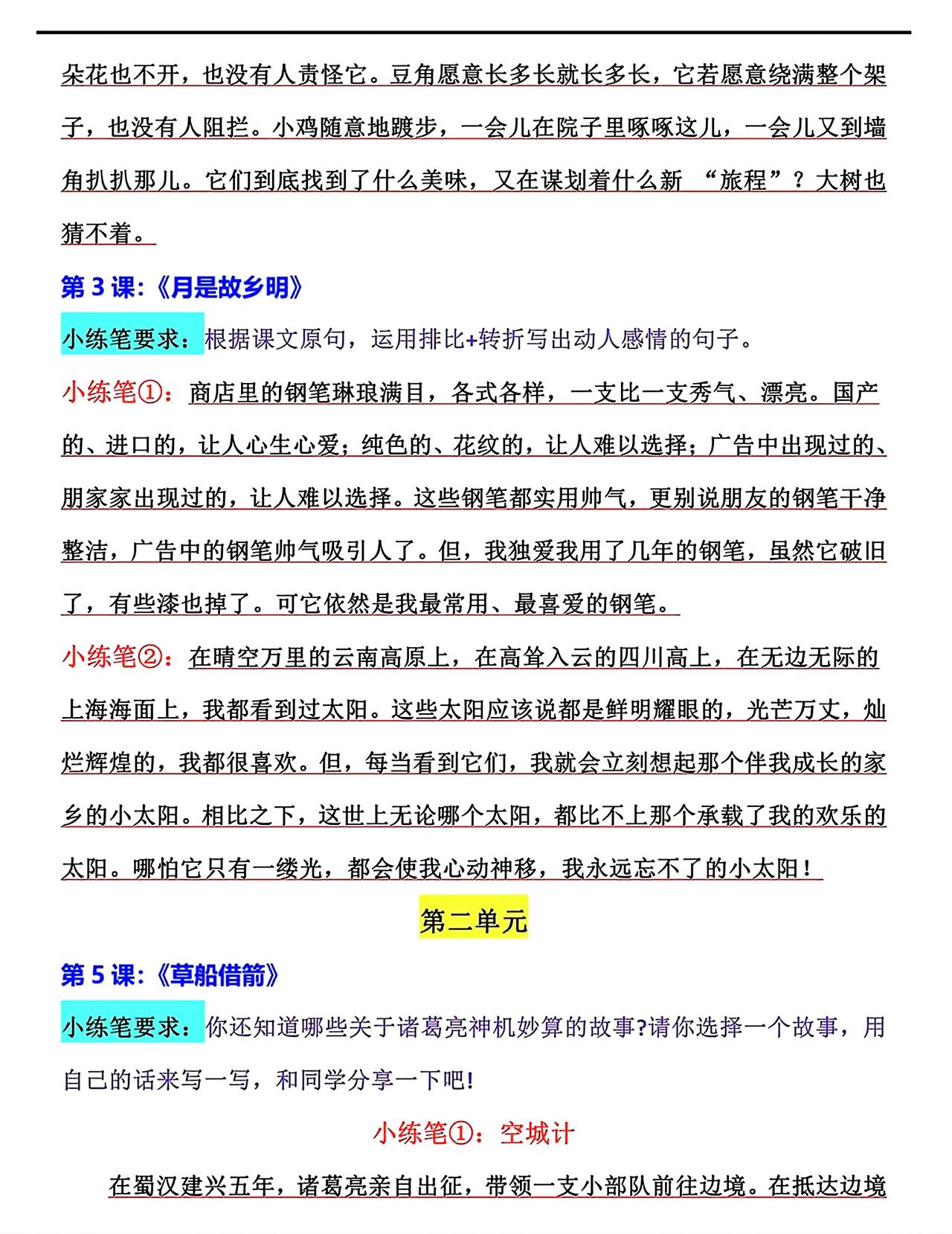 五年级下册语文,第一单元《古诗三首》《祖父的园子》《月是故乡明》、第二单元《草船借箭》《景阳冈》《猴王出世》《红楼春趣》课后仿写小练笔,收藏参考学习~五年级语文 仿写小练笔 仿写语文