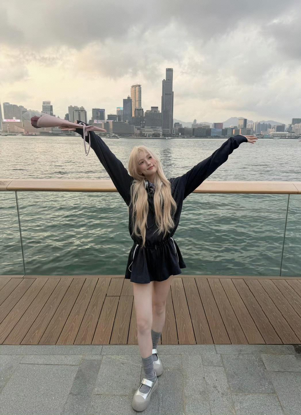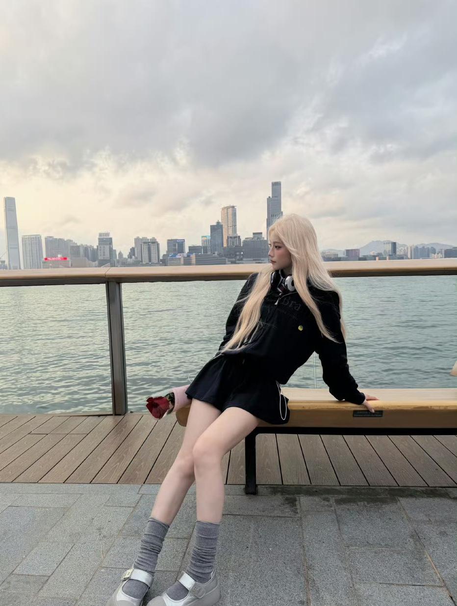 维港晚风漫过金发,揣一支玫瑰,耳机里循环着喜欢的旋律,在暮色来临前,和自由与浪漫