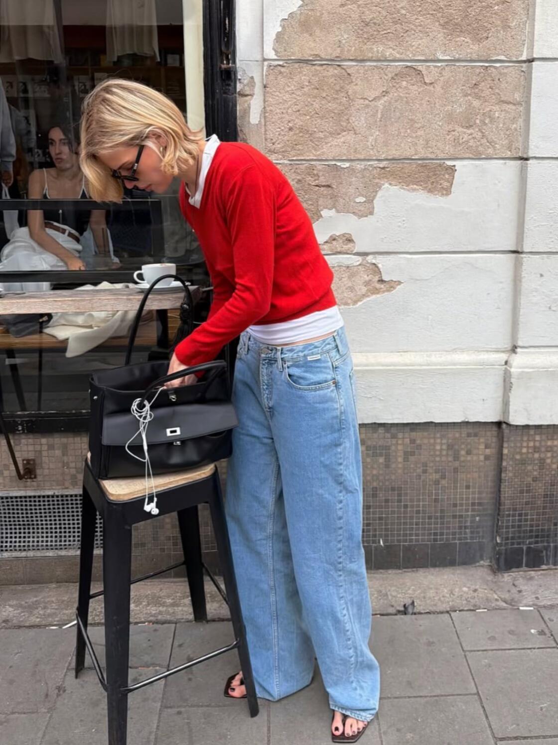 简单的针织衫、牛仔裤、白T,在她手里总能穿出松弛又高级的感觉。低饱和色系搭配利落版型,再用色彩呼应、叠穿技巧或腰带、包包点睛,轻松摆脱路人感。无论是复古红毛衣配浅蓝牛仔,还是米白衬衫叠穿外套,都把随性慵懒的氛围感拉满,日常通勤和出街都超有参考价值。