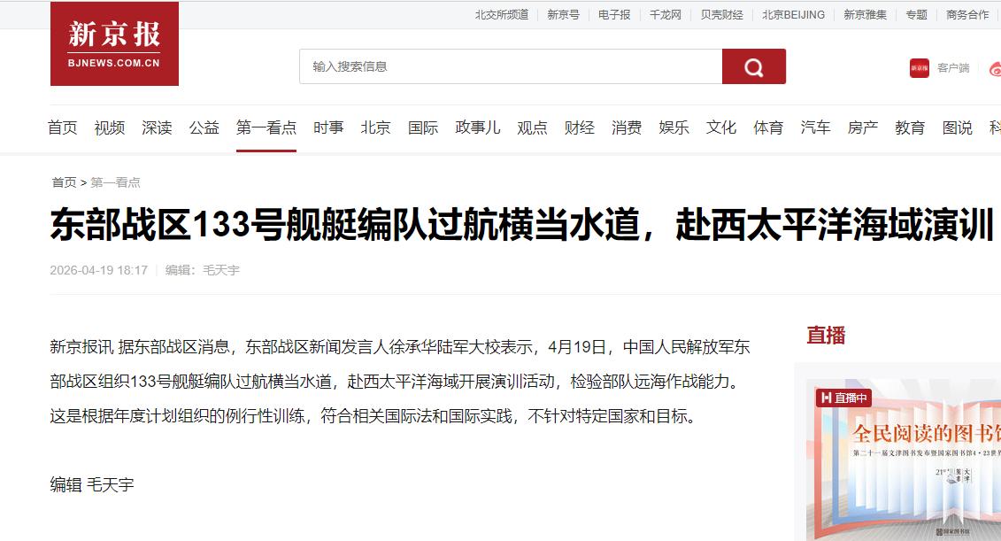4月19日,央视新闻和东部战区发布权威消息,中国海军133包头舰组成的舰队,堂堂正正、光明正大地通过日本九州与琉球群岛之间的横当水道,驶向西太平洋执行训练任务。这次过航,不仅是军事动态,更是国际法和地区格局的一次重磅宣示。