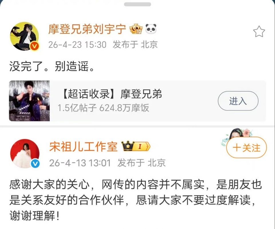刘宇宁本人直接回应了和上次祝绪丹回应对比,可以看出来刘宇宁和宋祖儿真就是普通同事关系!朋友都算不上啊刘宇宁否认与宋祖儿恋情宋祖儿 刘宇宁
