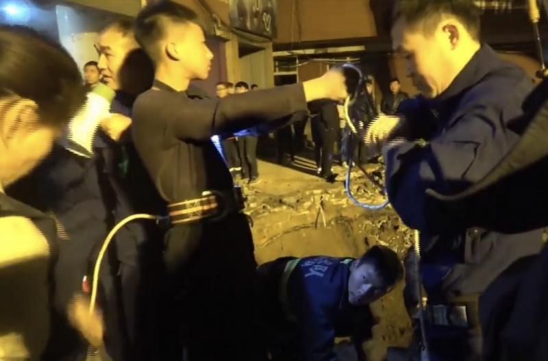 王泯燃成功下到井底,然后给小女孩拴紧绳子,大喊一声拉,消防员一起用力,终于将两个孩子拉上来了。