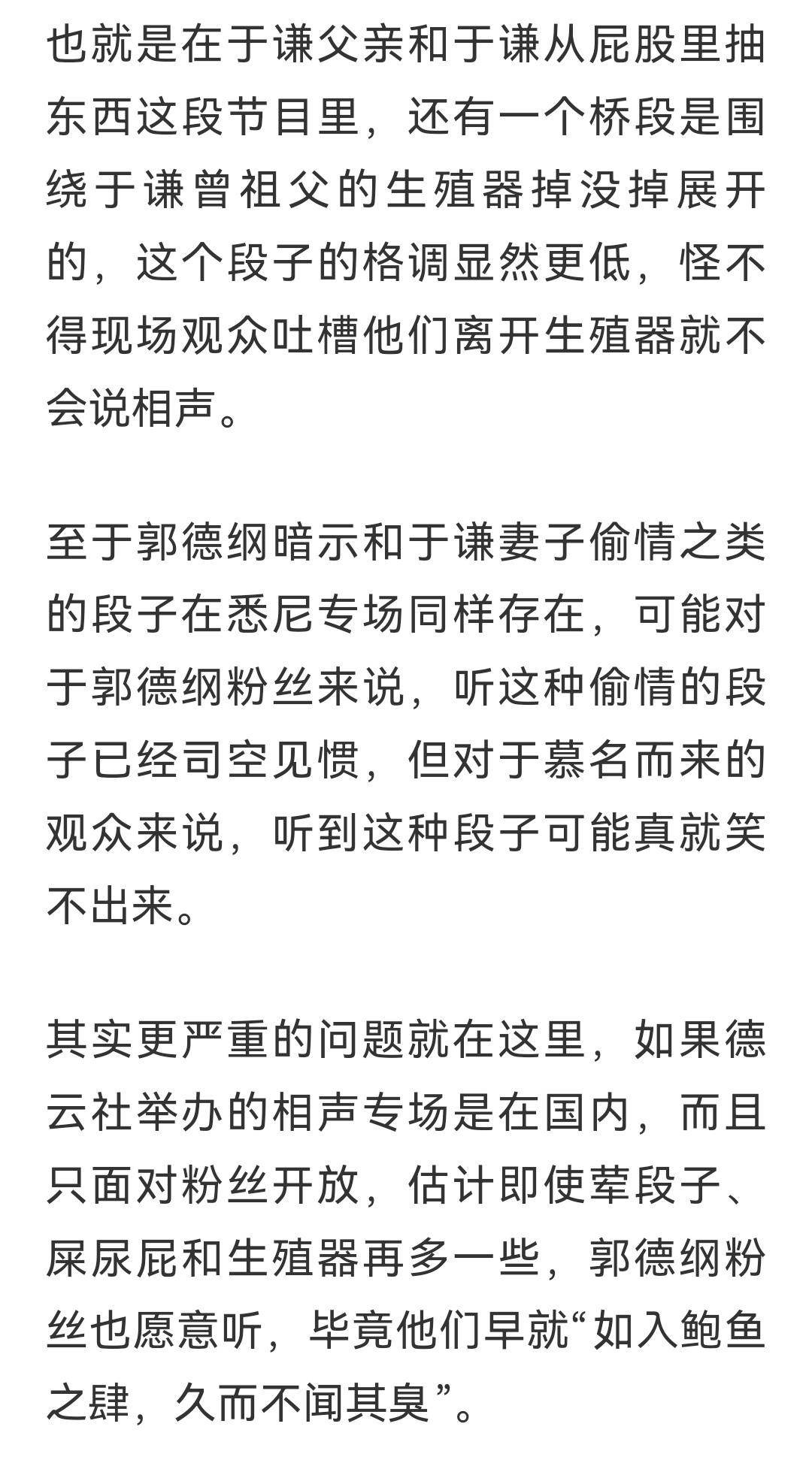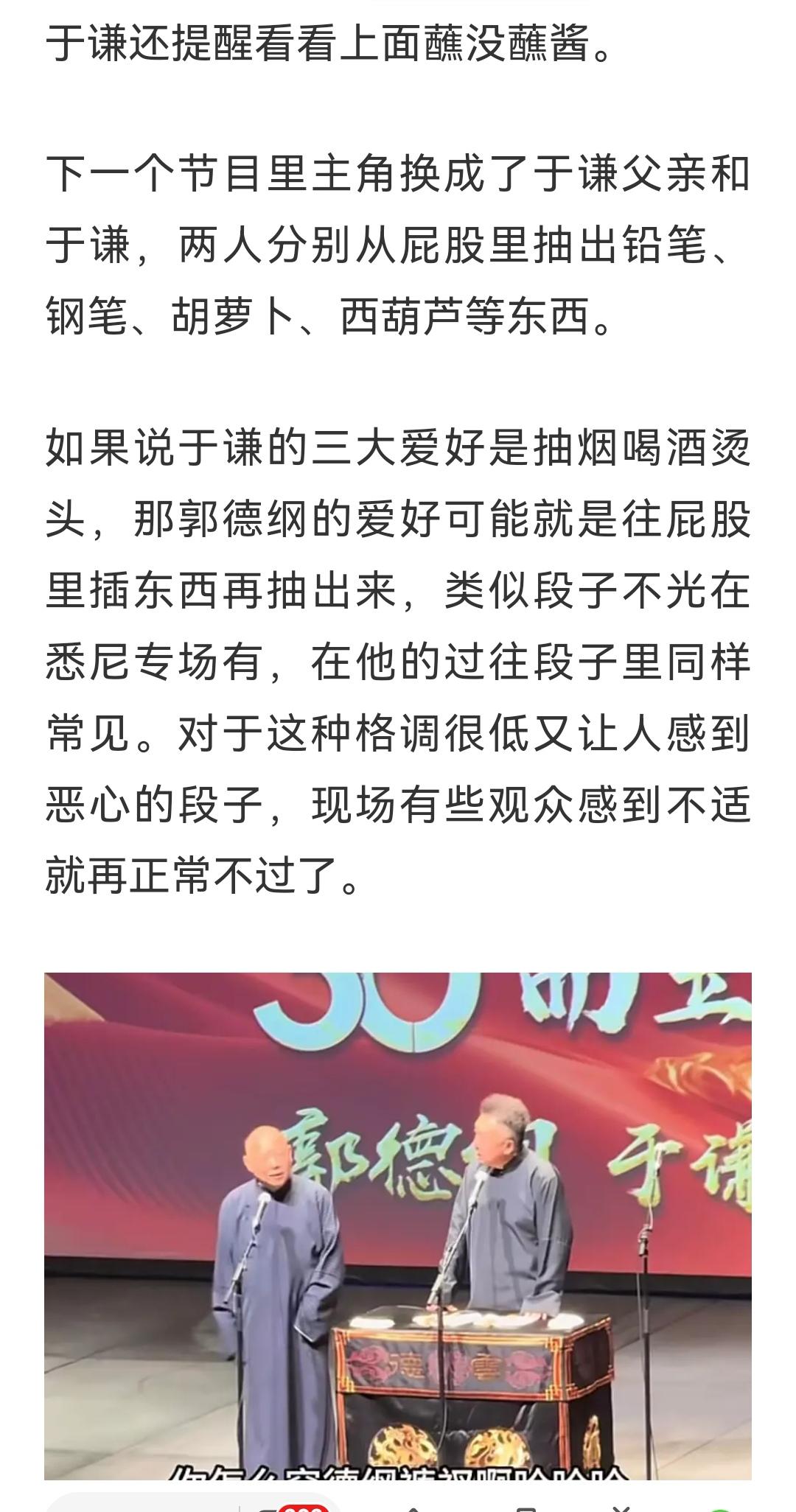 屁股里拔大葱,还说抹酱了没有,这么恶心?这确实不是相声,这不是骂人呢吗?