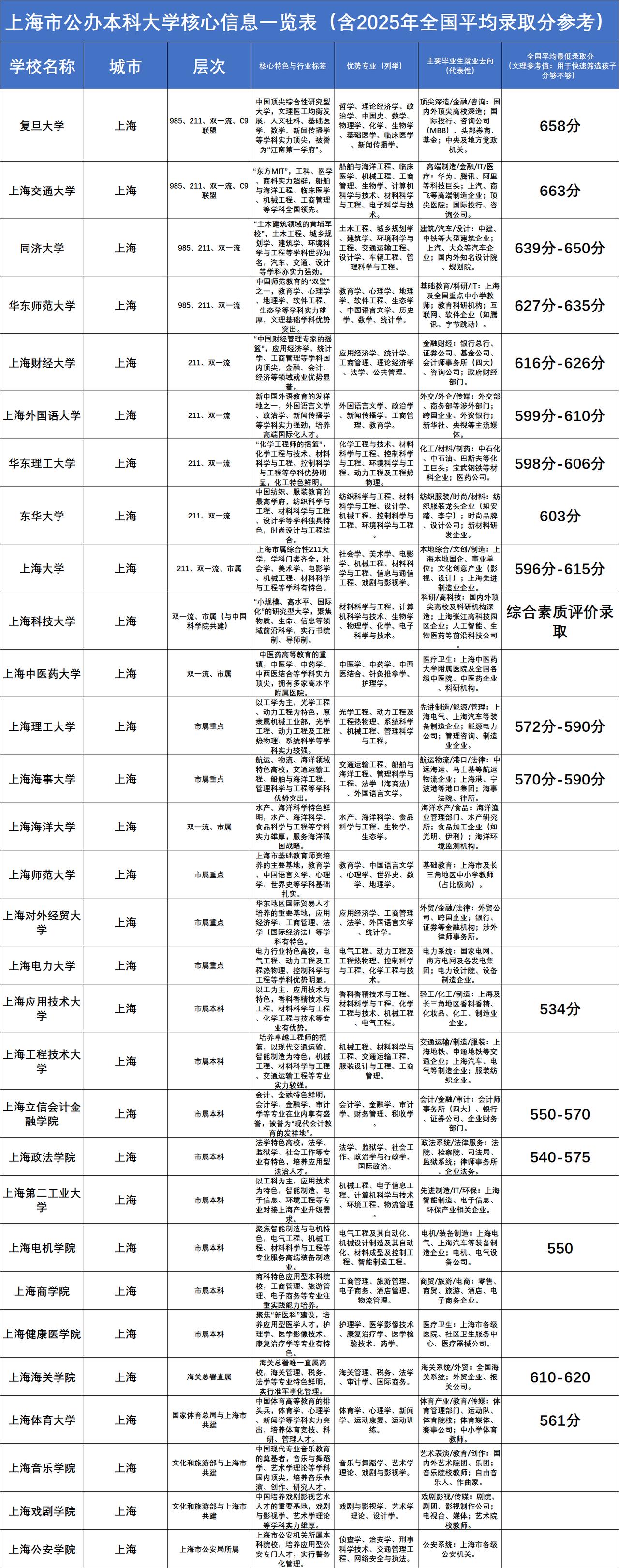 下附图片:上海高校详情。高考 高考志愿 高考志愿填报
