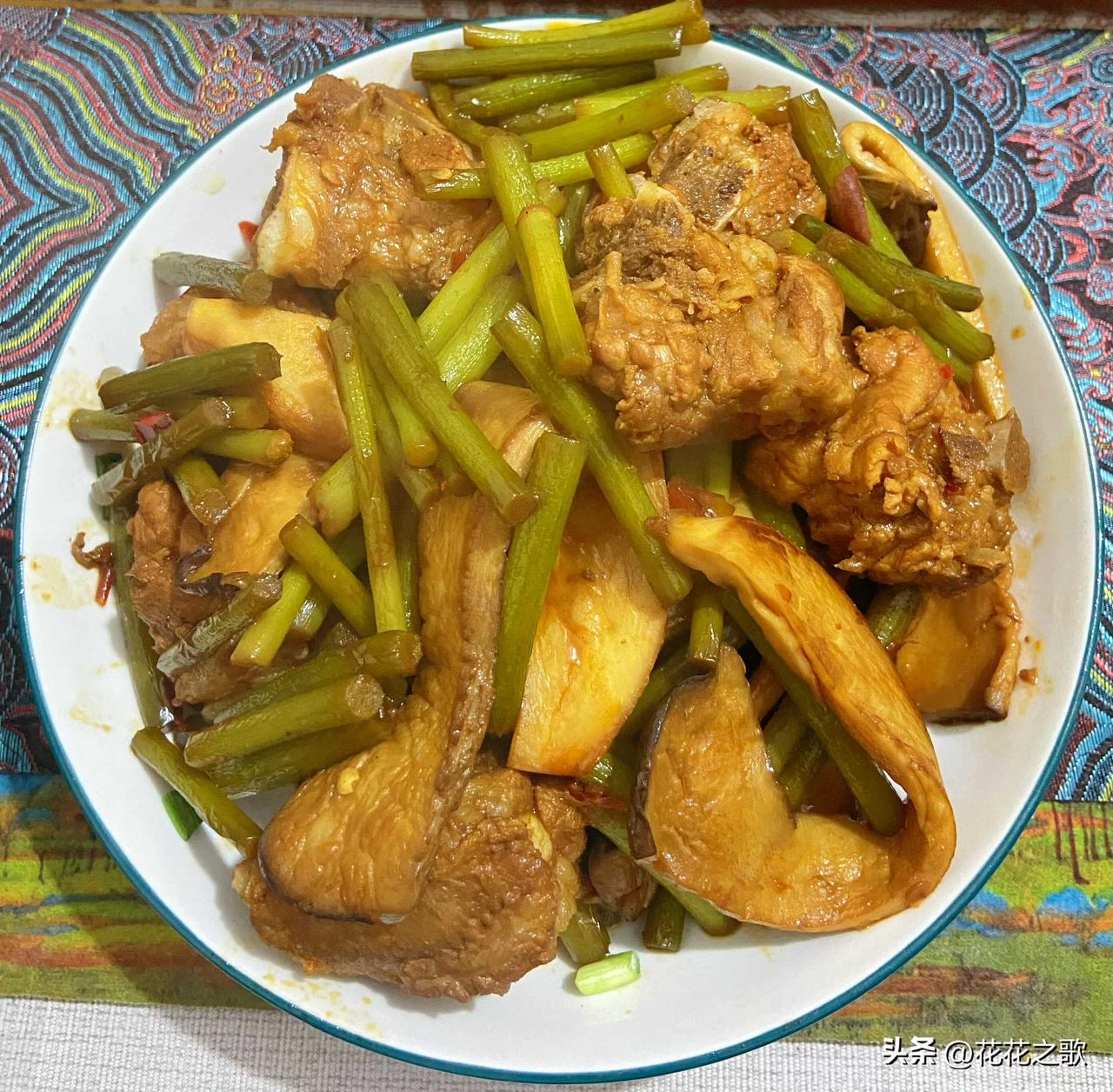 这个晚餐虽然有点混搭,但是货还是很足,很有分量的。 大哥的晚餐:排骨、蒜苔、杏鲍菇一锅杂烩,汤泡饭(这是嘴馋我的,感觉每一粒米都带着排骨汤汁的味) 我的晚餐:橘子,茶,咸鹅蛋(不能一次性吃多了,分两块给大哥吃,给大哥补补营养)