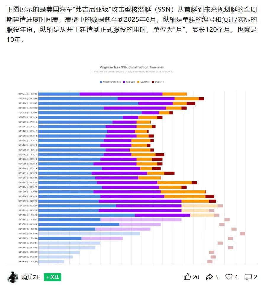 不过首先我们要指出来的是,这位海军上将对于美国海军的历史显然不太了解。虽然美国海军现在建造的核潜艇规模确实很大不假,但绝不是二战以后最大的一次,冷战早期的美国海军建设规模更加夸张。