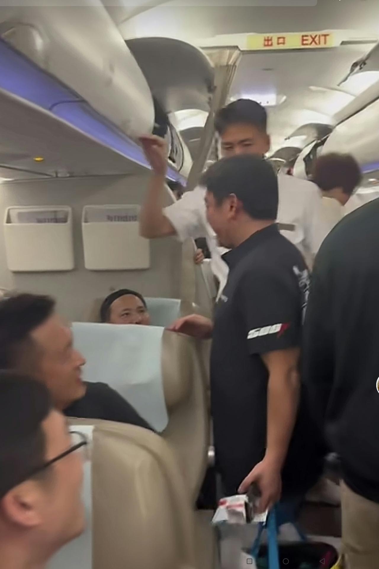 登机进入机舱后,立即被乘客认出,纷纷要求同他合影留念,张雪微笑着同乘客合影,气氛非常的活跃!