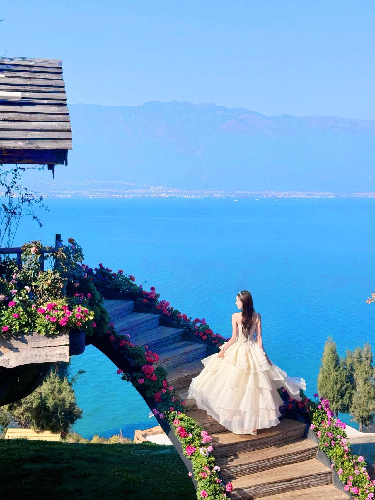 蓝天为幕,碧海为台,繁花簇拥着一袭白裙。 裙摆随风扬起,在山海与花境之间,闯入