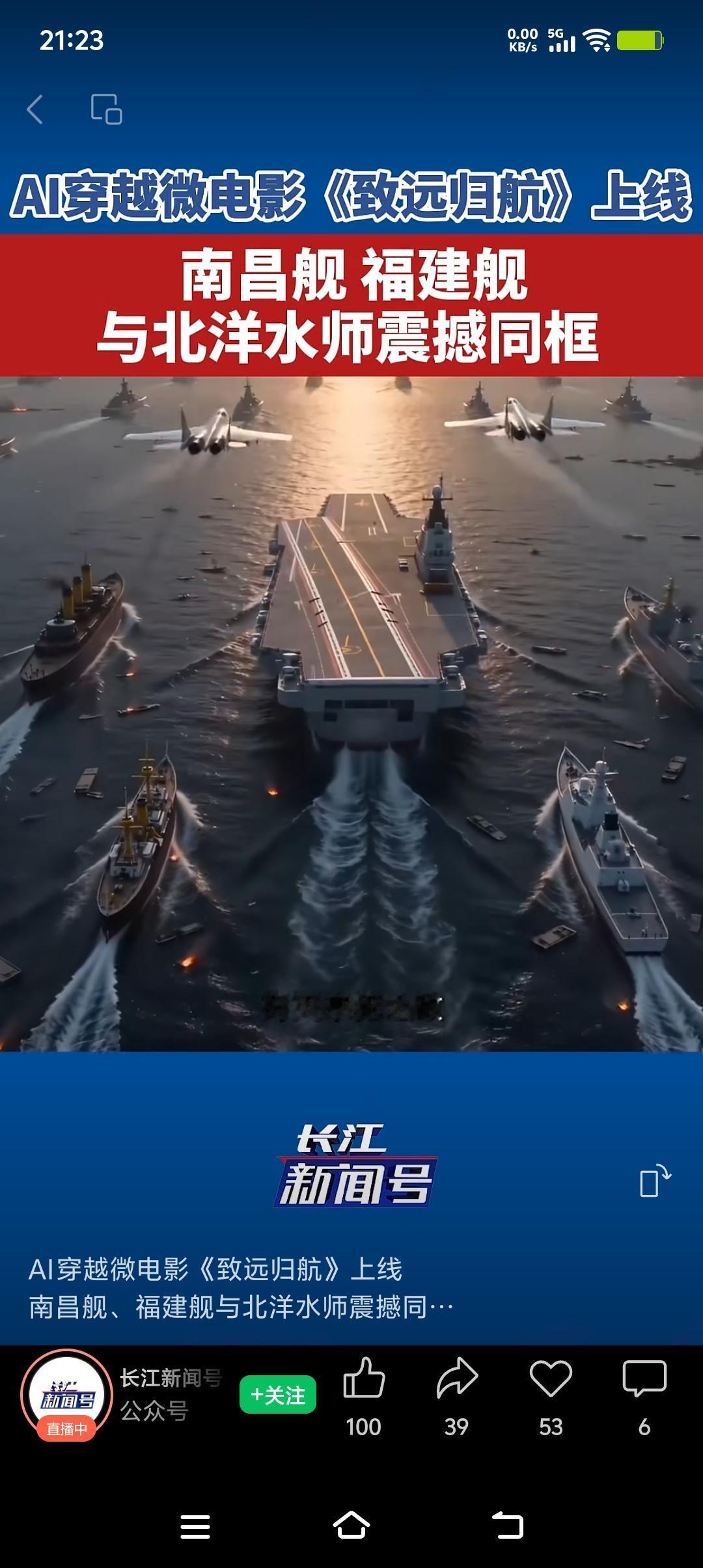 看到这跨越130年的同框,“科幻”与“泪目”交织。曾经北洋水师战败的悲壮,与如今强大海军力量形成鲜明对比。这不仅是视觉盛宴,更让人感受到国家的崛起,激励着我们铭记历史,奋勇向前。 声明(借用网络视频图)