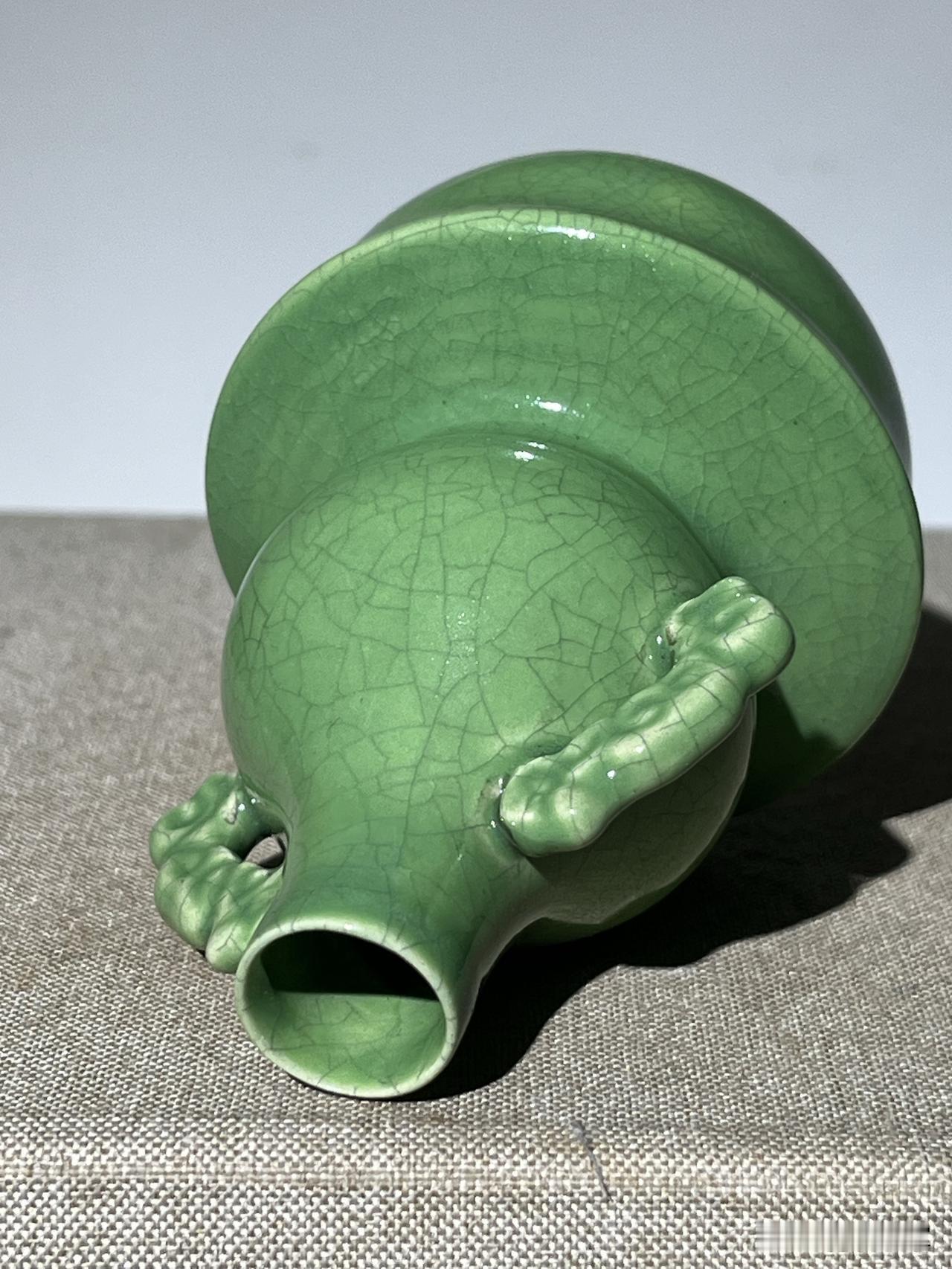 藏友们好,今日更新《柴窑名窑图鉴》第十六辑,给大家分享一件五代柴窑臻品——双耳如意葫芦瓶。