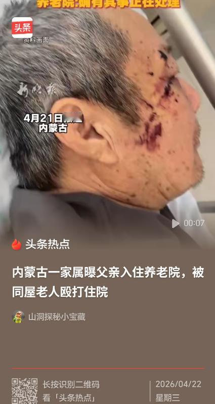 “必须严惩!”内蒙古赤峰,女子将丈夫送到养老院,几天后接丈夫,只见丈夫裤子直接裂开到裤裆,上衣后背被撕烂了,整个人都是骚的,原来他被打了,同屋的老人用棍子打他,打断了三节,随后又拿起钢制的拐杖打,只要她丈夫一动,就被打,事发两个小时之后,工作人员才发现她丈夫被打得头破血流,赶紧送人去医院!