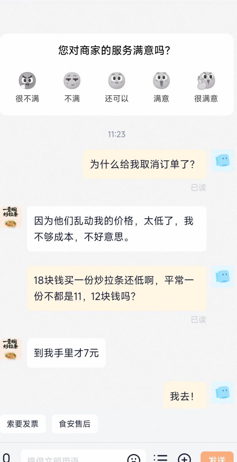 今天中午点外卖,结果店家直接给我取消了