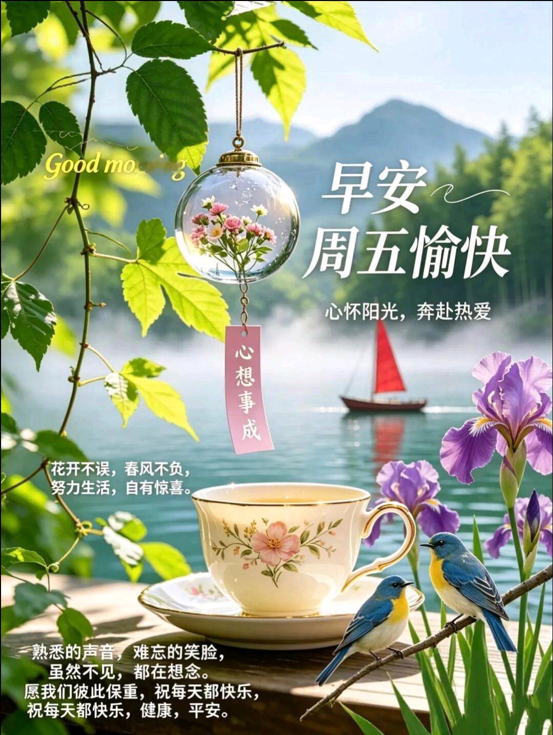 🌄 新的一天,美好启程,愿你心中有阳光,岁月有花香,开心每一天,不负好时光,诸事皆顺宜。周五早安️!😊☕️