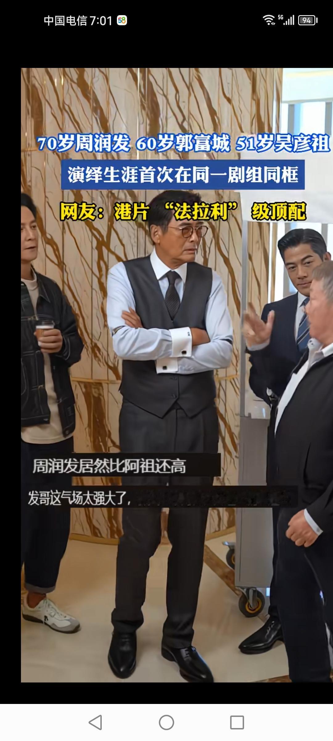 70岁周润发、60岁郭富城和51岁吴彦祖居然要在同一剧组同框了,这简直是梦幻联动!这三位可都是演艺界的传奇人物。周润发,那经典的小马哥形象深入人心,他的演技细腻又有张力。郭富城唱跳俱佳,在电影里也是魅力十足,像《无双》里的精彩表现让人赞叹。吴彦祖更是颜值与实力并存,《新警察故事》里的反派角色都被他演活了。他们首次同框,不知道会擦出怎样的火花,光是想想就很期待,感觉又要有一部经典之作诞生了!