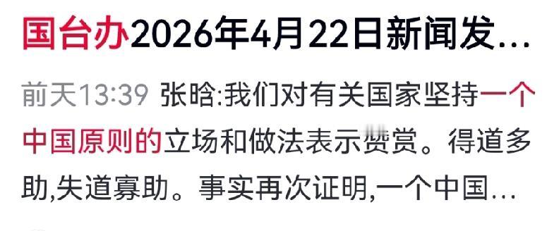 一个中国原则,是两岸交往不可逾越的红线,更是国际社会公认的事实。国台办新闻发布会,是大陆对外发声的权威主场,绝非分裂言行的试探场。