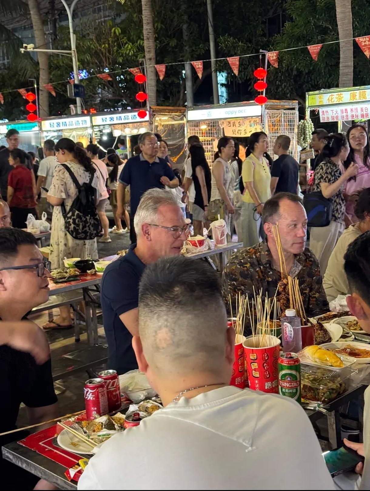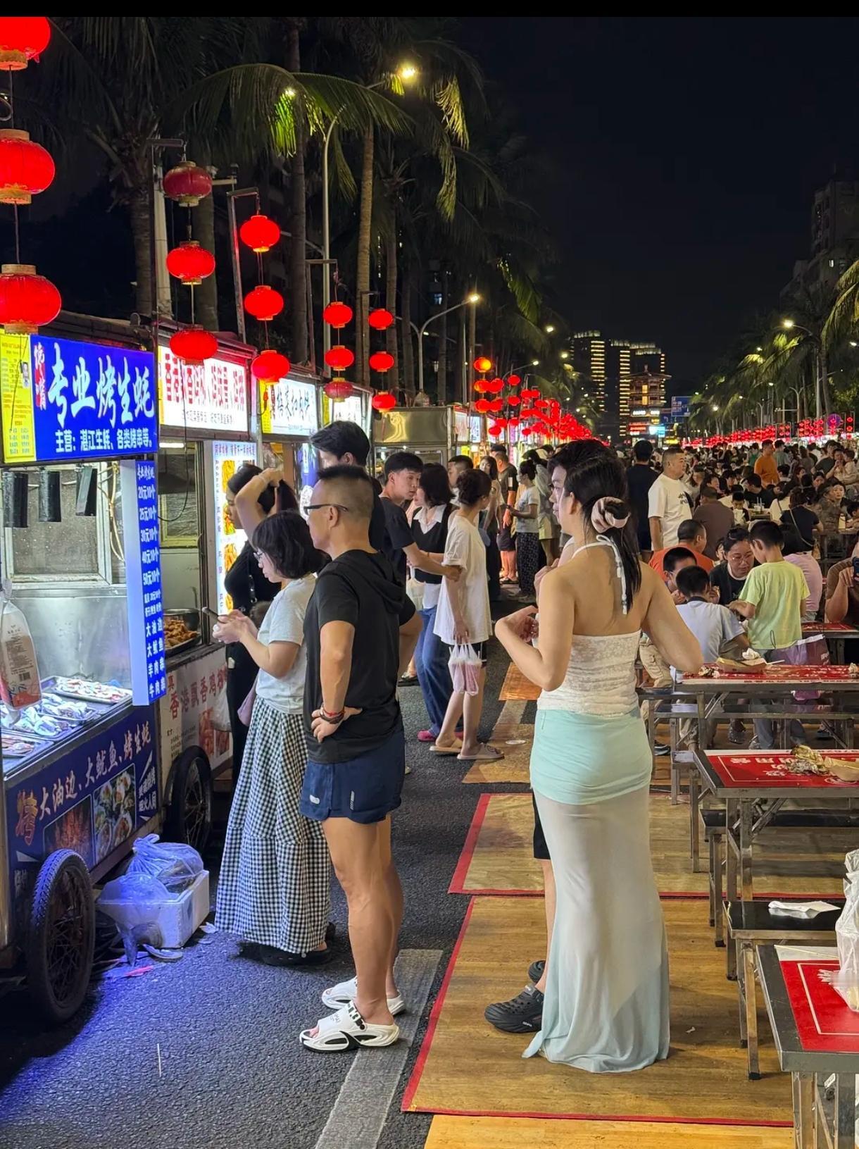 海南夜市人来人往,各地特色小吃都有,这牛蛙看上去像一个肌肉男唉。据说海南遍地东北人……还有被制裁没法去地中海度假的俄罗斯人。好羡慕不用上班到处旅居。
