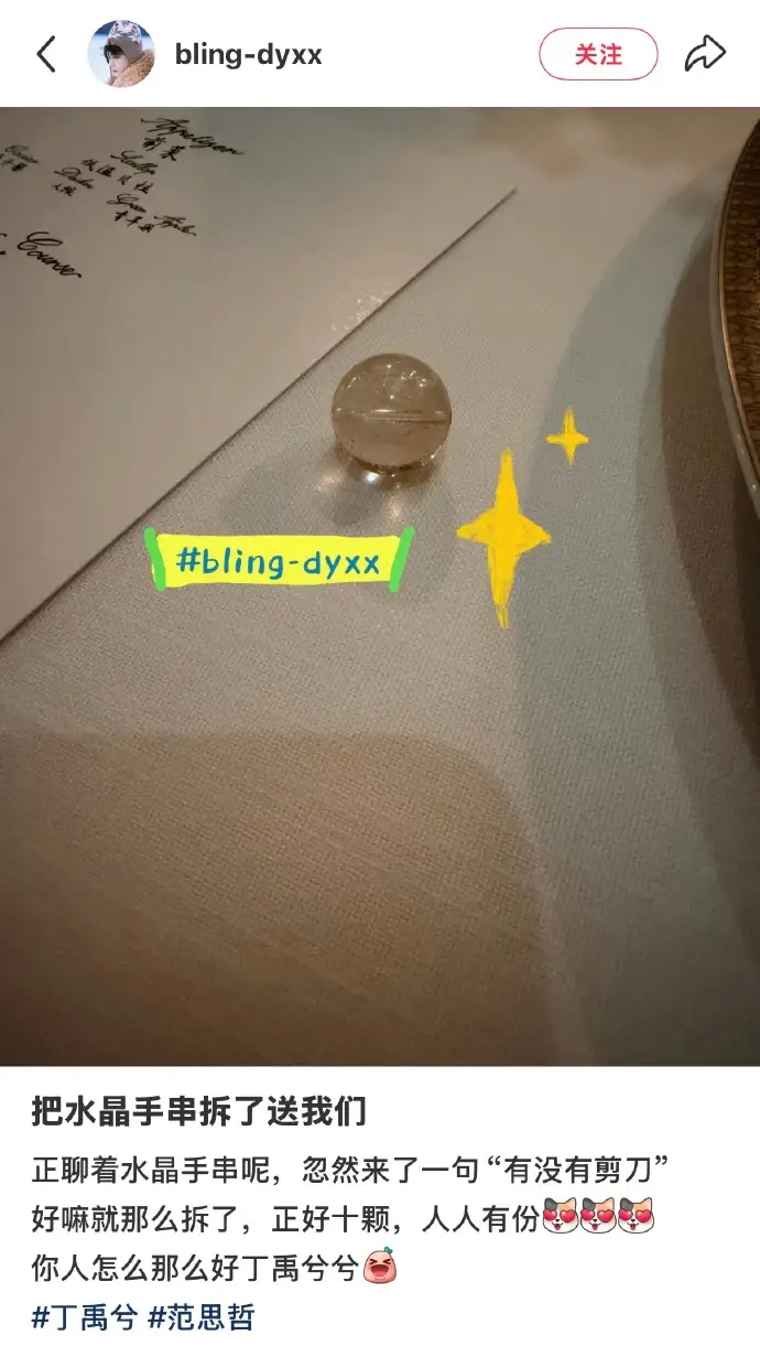 丁禹兮把水晶手串拆了送粉丝丁禹兮你这和送定情信物有什么区别。谁也没有想到,温柔细