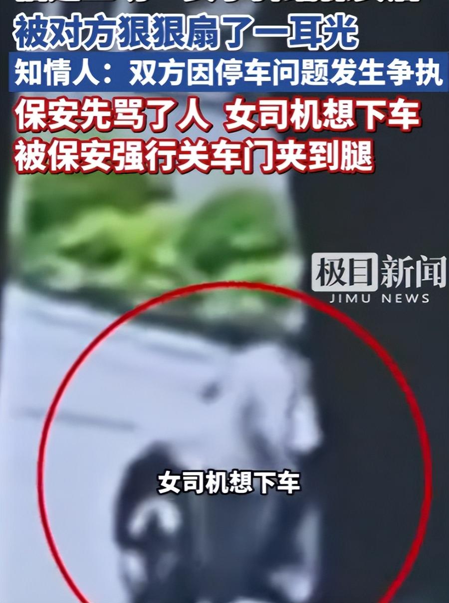 保安一把将车门推回去,把她的腿夹了。