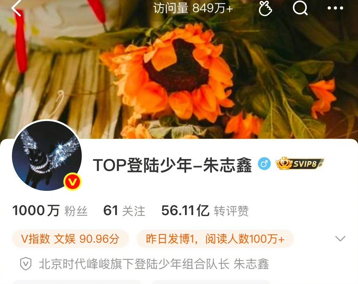 朱志鑫粉丝破千万了恭喜小朱!微博粉丝破千万啦一定还会收获更多人的喜爱未来可期