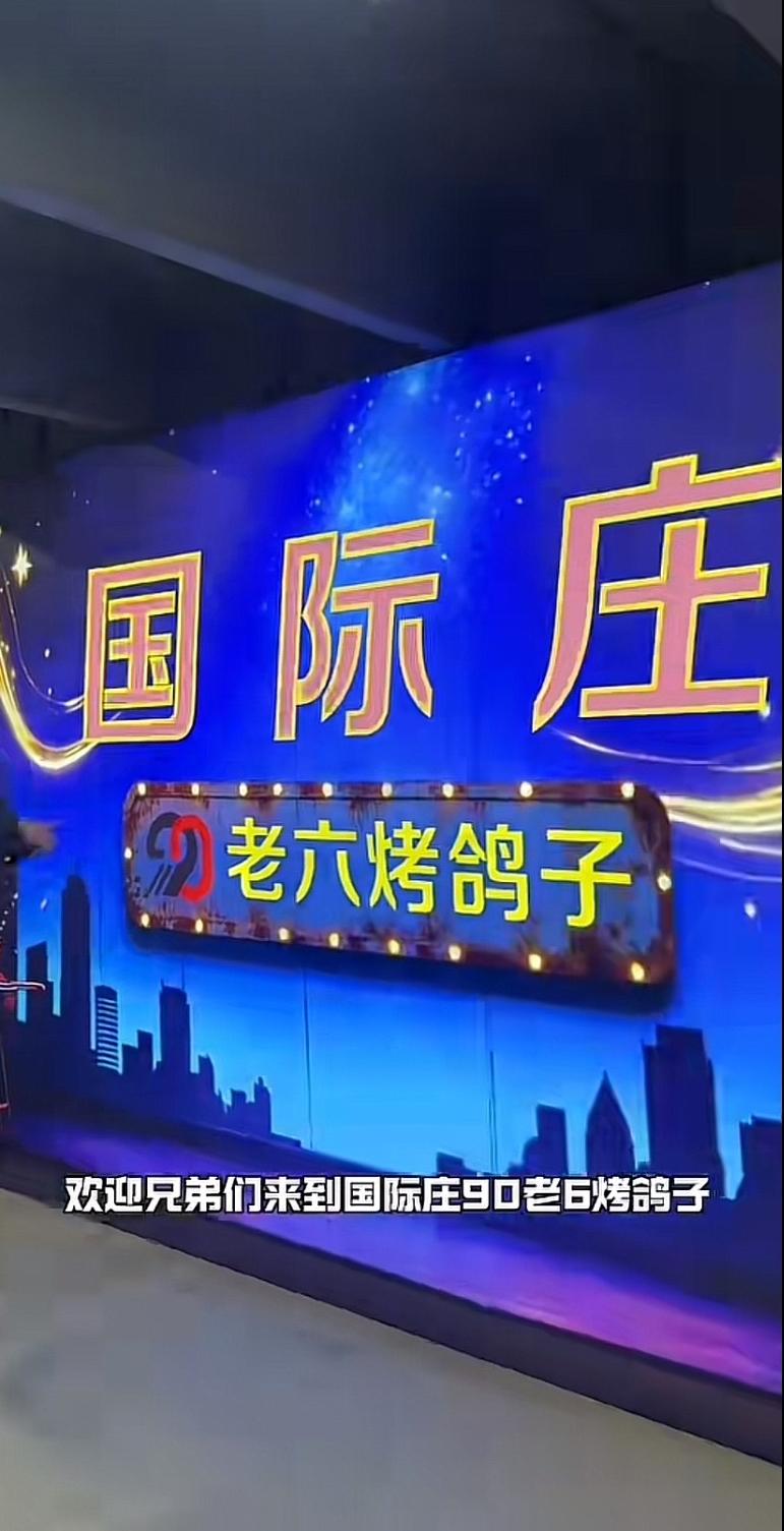 作为国际庄带的大网红,玖零超跑俱乐部董事长,张晓民这波跨界干实体,直接把同城热度拉满了。门头挂着“老六烤鸽子”,下面配着“一鸽胜九鸡”的标语,看着就很接地气。从曝光的视频看,店里上下两层,空间敞亮,背景墙直接印上“国际庄”三个大字,连专业音响都调试好了,吃个烧烤都能有小型演出现场的氛围,这排面在石家庄的烧烤店里真不多见。