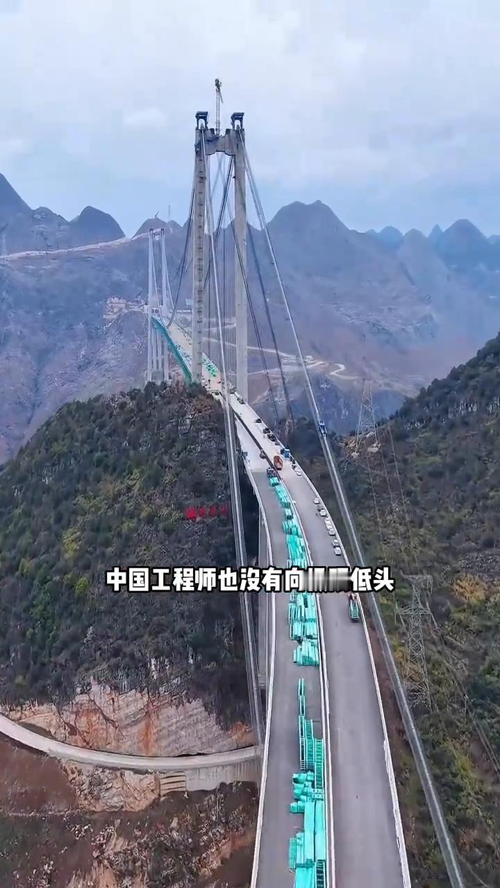 花江峡谷大桥让世界看到的不只是中国桥梁技术的高度,更是中国人骨子里的那股劲,一种敢向绝壁要通途,敢在云端写奇迹的精神。这座桥走出的不只是大山,更把中国的技术、勇气和梦想一起带向了世界。