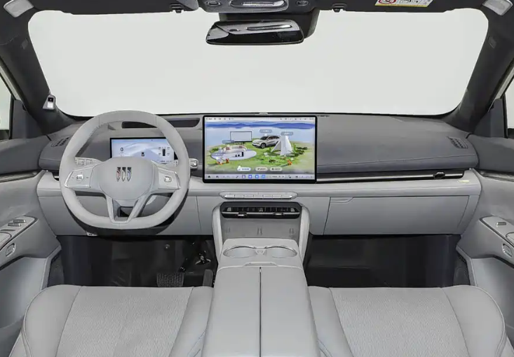 新车外观延续至境SUV概念车“展翼元素”设计理念,采用了新能源车流行的封闭式前脸,勾勒出驭风鲨鱼前脸设计语言,搭配造型别致的分体式星河展翼大灯组,上方的日间行车灯光源采用了修长的C型设计,下方的主照明光源也进行了流水式处理。车侧采用半隐藏式车门把手,搭配20英寸密辐式轮圈。车身长宽高尺寸为4850×1910×1676mm,轴距为2850mm。车尾加入了别克至境家族的发散式尾灯,点亮后光源从中央的BUICK车标向外延伸。车顶配备激光雷达,将搭载“逍遥智行”辅助驾驶系统,依托Momenta R6强化学习大模型,拥有全场景辅助驾驶能力。