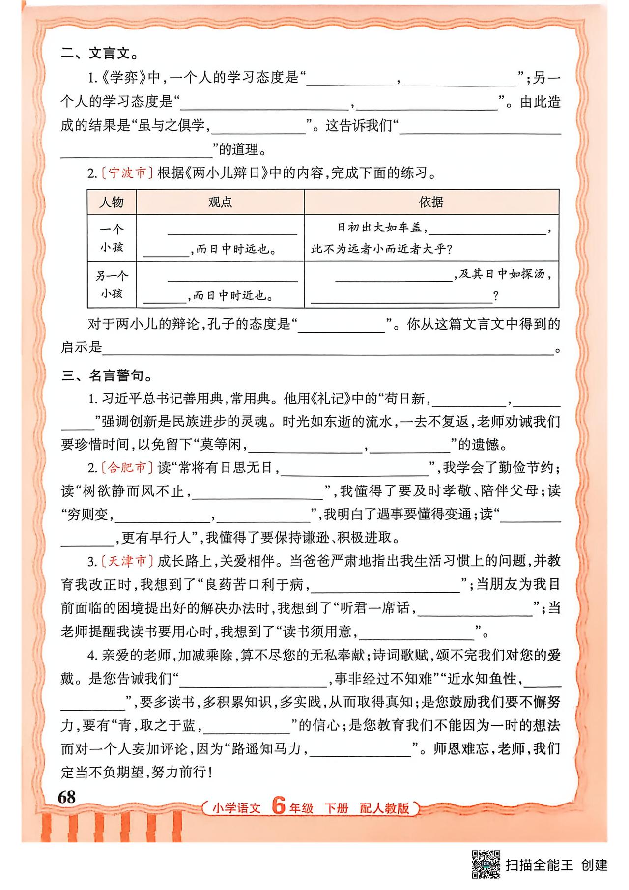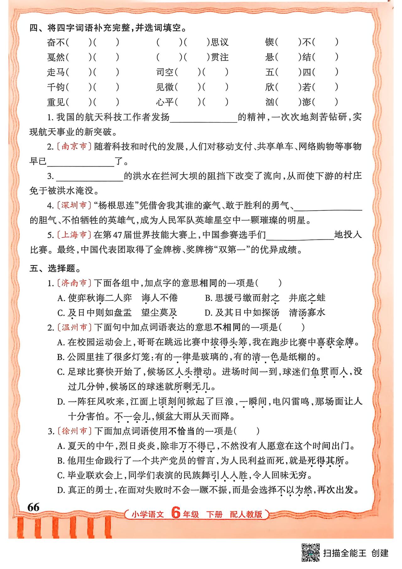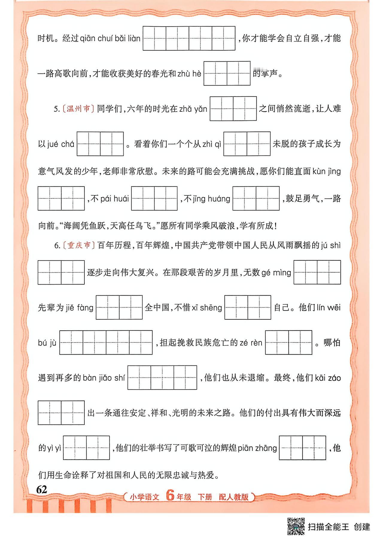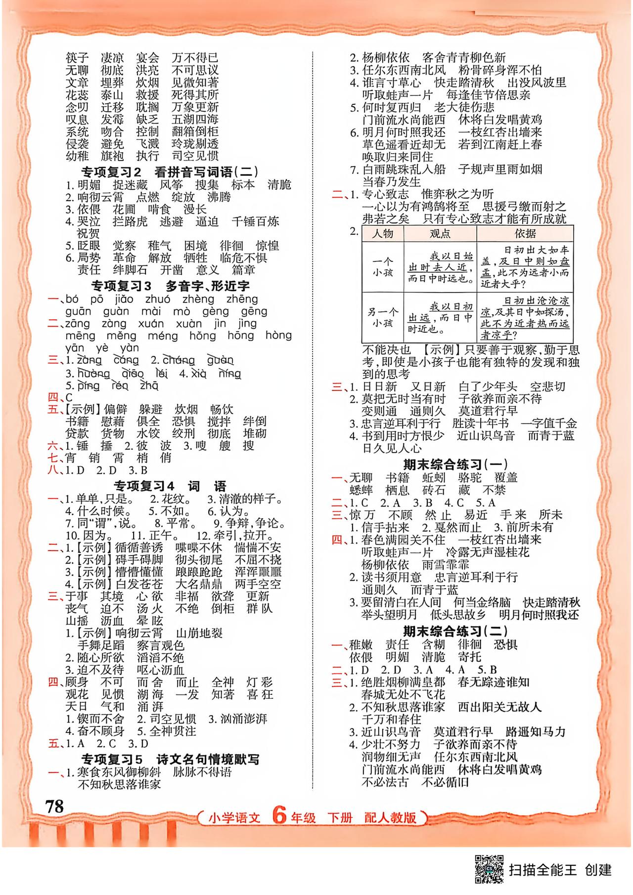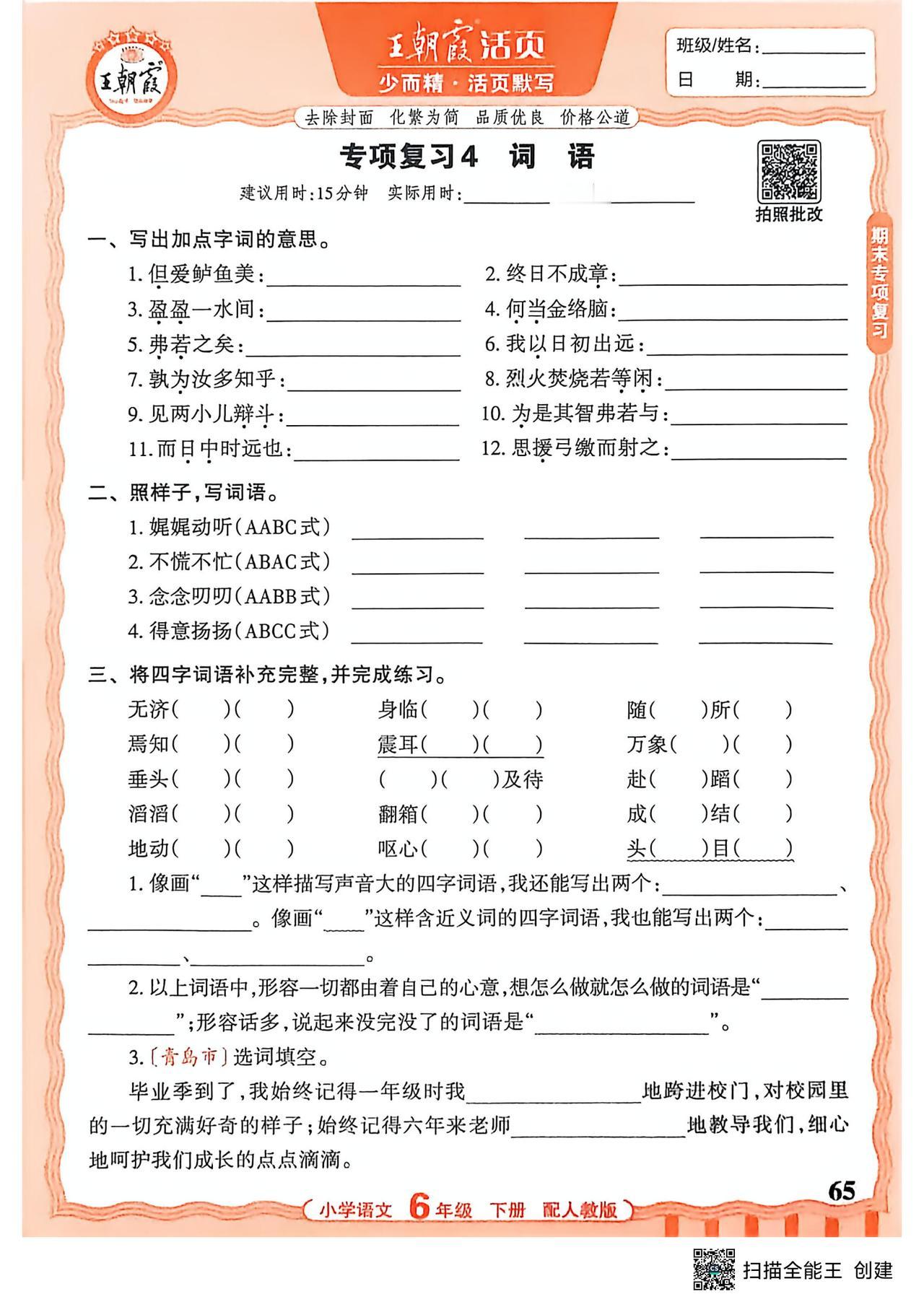 26春六年级下册语文,看拼音写词语、多音字、形近字、词语、诗文名句情境默写等期末专项复习+参考答案,收藏练一练巩固知识