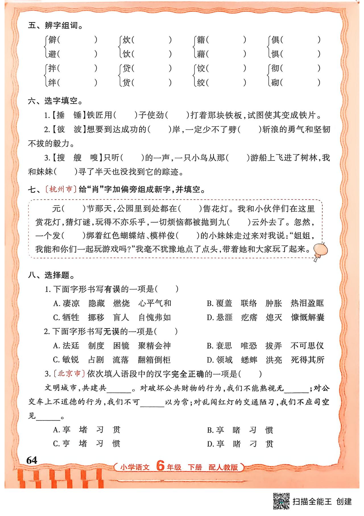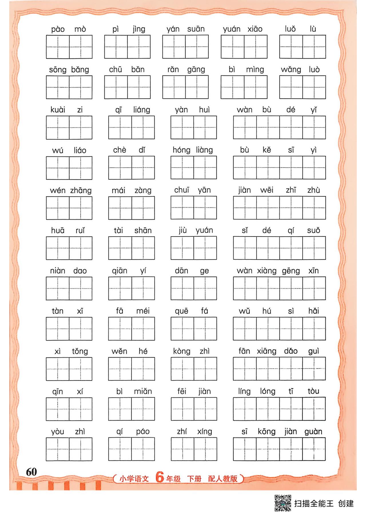 26春六年级下册语文,看拼音写词语、多音字、形近字、词语、诗文名句情境默写等期末