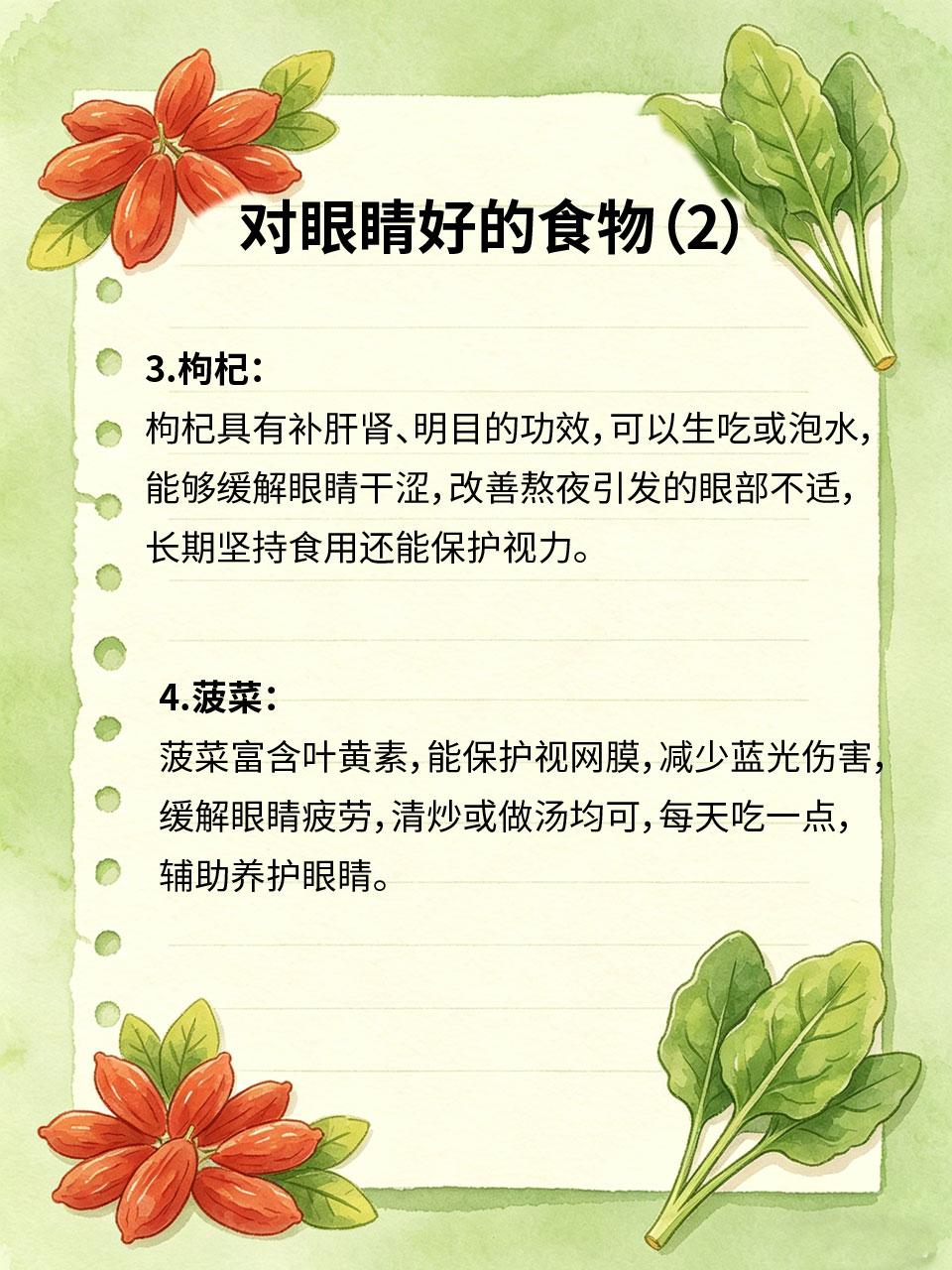 眼睛养护重在日常,常吃这4种食物,搭配合理用眼,避免长时间看电子屏幕,慢慢就能缓解干涩疲劳,让视力逐渐恢复🌟