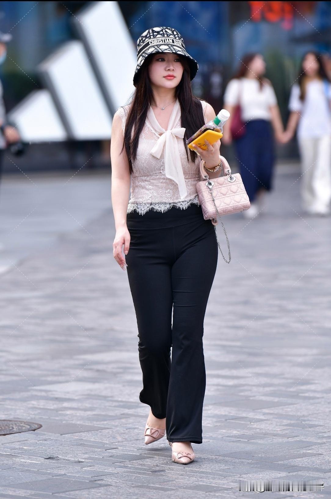 都市时尚少女这一身搭配太绝了!白色蕾丝上衣配黑色裤装,经典黑白组合永远不会出错。