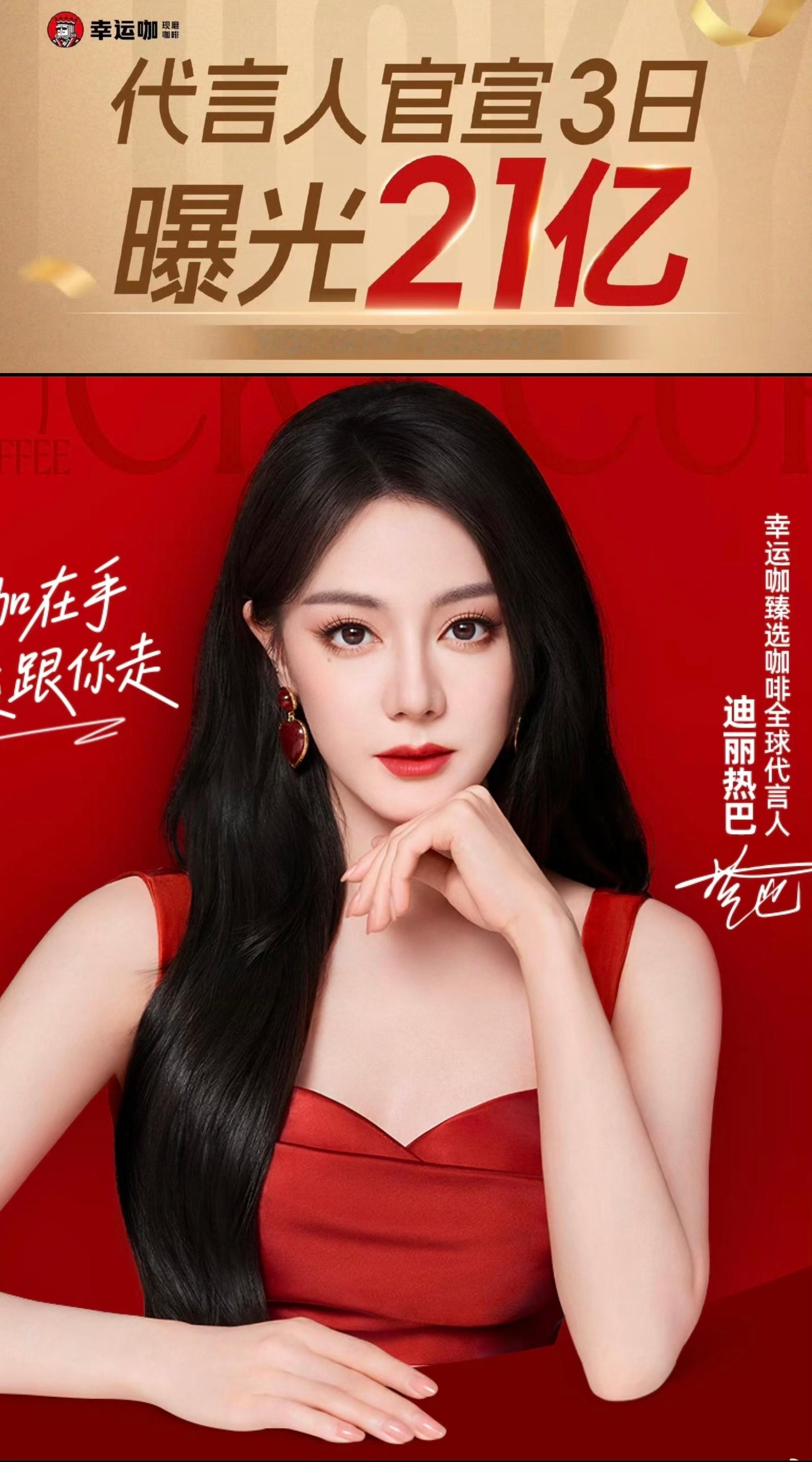 迪丽热巴代言的幸运咖,官宣3日达到了21亿的曝光量,品牌真的赢麻了,品质感都提升了几个档位。